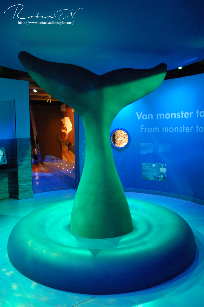In de 16e eeuw wisten mensen nog maar weinig van walvissen. Ze vonden het vooral griezelige zeemonsters. Dat beeld van de walvis veranderde toen de Nederlandse zeeman Willem Barentsz op ontdekkingstocht ging naar de Noordelijke IJszee. Hij zag hoeveel walvissen daar waren en hoe makkelijk ze zich lieten vangen. Daarna gingen steeds meer mensen op walvisjacht, omdat je geld kon verdienen, eerst met de olie uit het spek en later met de baleinen van de walvis. In de 19e eeuw stopte Nederland met de walvisvaart. Maar toen er na de Tweede Wereldoorlog aan van alles gebrek was, begon de jacht opnieuw. In 1964 voer de laatste walvisvaarder uit onder Nederlandse vlag. Milieubewegingen over de hele wereld waren inmiddels in actie gekomen tegen de walvisvaart. Tegenwoordig is er veel verzet tegen de jacht op walvissen. De walvis dreigt uit te sterven en de jacht is wreed. Dit verhaal is op een interactieve, leerzame manier inzichtelijk gemaakt. Natuurlijk ontbreekt de walvis zelf niet, de Groenlandse walvis die zijn bek voor je opent aan het begin van de tentoonstelling. Hij toont zijn staart bij het wegduiken aan het einde.