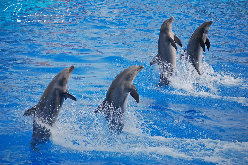 Momenteel leven er zes dolfijnen in het dolfijnenbassin: De volwassen vrouwtjes Lotty, Sharky en Malou, samen met volwassen mannetjes Rocky, Dam en het jonge mannetje Kai. Deze groep dolfijnen ken ik al heel lang! Enkele dieren al sinds ze nog in vorige parken woonde of zelfs sinds de geboorte! Het is een stabiele groep dolfijnen met een duidelijke rangorde, al wil het jonge mannetje af en toe nog wel eens voor opschuddingen zorgen. Alle zes dolfijnen doen mee aan de shows en hebben allemaal een eigen karakter en verhaal. Ik stel voor: