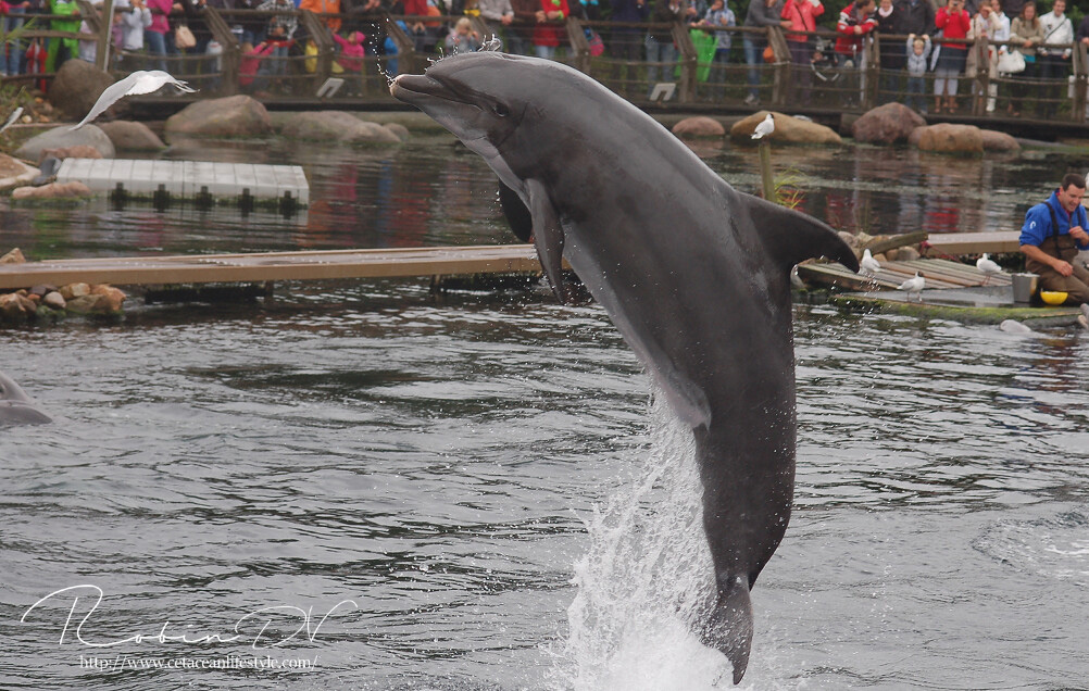 Skinny was de oudste en meest herkenbare dolfijn van het Dolfinarium. In mijn eerste herinneringen van het park is zij daar; de grote donkere dolfijn met de witte vlek boven haar borstvin. Skinny was een prachtig en ongelofelijk lief dier dat jarenlang voor d ogen van miljoenen bezoekers heeft geleefd. Zelden heeft één dier zoveel mensen geïnspireerd, ademloos laten toekijken als ze door de lucht vloog met orka Gudrun aan haar zijde en zoveel geleerd aan zoveel generaties! Een ware ambassadeur voor haar wilde soortgenoten. Een ode aan de prachtige Skinny in de vorm van mijn foto's die ik 10 jaar lang van haar heb gemaakt kun je hier vinden.!
