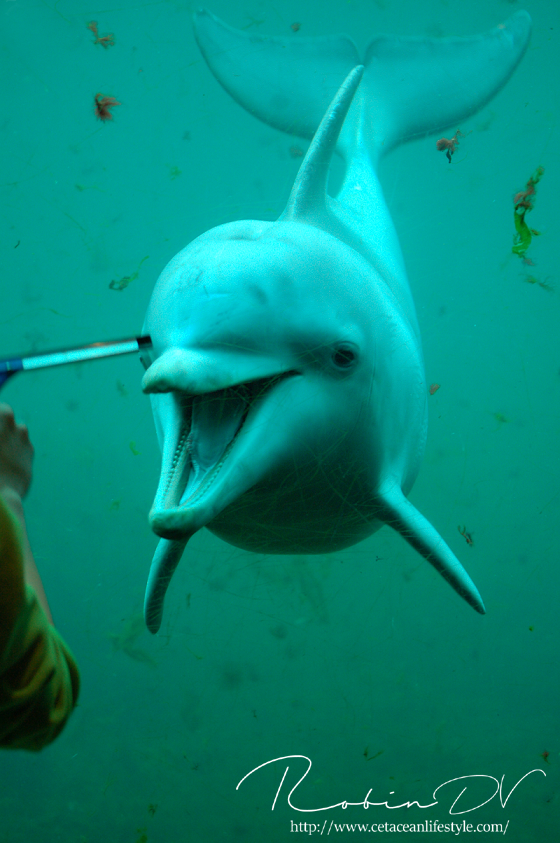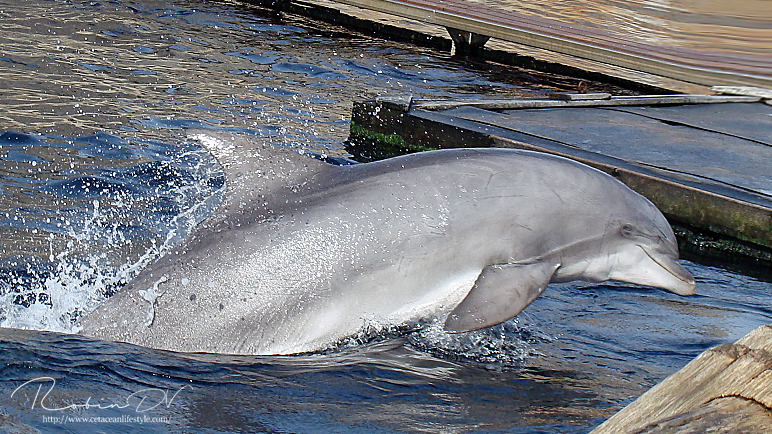 Ook dit jaar weer traditiegetrouw een blog over de dolfijnen uit de dolfijnendelta. De dolfijnen uit het dolfijndomijn kun je vinden in een apart blog omdat het blog anders te lang wordt! Ook dit jaar zijn er weer wat veranderingen. De drie Duitse dames die naar Harderwijk zijn gekomen voor het fokprogramma zijn inmiddels bevallen. Helaas is niet alles goed gegaan. Zowel Anke's als Naomi's kalf zijn kort na de geboorte gestorven. Anke's kalf kwam ter wereld via een hoofdgeboorte waardoor het kalf niet genoeg zuurstof kreeg en overleed. Naomi heeft haar kalf kort na de bevalling verstoten en hielp het kalf niet met naar boven zwemmen om adem te halen. Ook probeerde zij het kalf aan te vallen. De trainers hebben ingegrepen en de zorg voor het jonge dolfijntje overgenomen, dit mocht echter niet baten en het diertje is kort daarna overleden. Ontzettend droevig nieuws dus. Gelukkig is de bevalling van Nynke wel goed gegaan! Zij is op 21 augustus bevallen van een mannetje genaamd Kai. De jongen uit 2009 groeien als kool en hebben allemaal al een eigen karaktertje. Ook zijn ze heel goed uit elkaar te houden. Ook zijn er wel vier nieuwe jongen bijgekomen. Allemaal mannetjes! Namelijk Makai, Sting, Storm en King! Hier komt de voorstelronde: