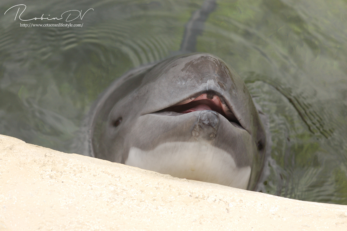 Bruinvissen zijn één van mijn favoriete dieren! Iedereen denkt altijd dat dolfijnen of orka's mijn favorieten zijn, maar de bruinvissen hebben echt een speciale plek in mijn hart. Je kunt ze in Europa maar op twee plekken zien; het Dolfinarium en Fjord&Bælt Center in Denemarken. Ook zijn er sporadisch bruinvissen te zien in het opvangcentrum van SOS Dolfijn in Dierenpark Hoenderdaell. Nog niet zo heel lang geleden waren er drie plekken in Nederland met bruinvissen. het Dolfinarium, Ecomare en onderzoekslab SEAMARCO. Inmiddels zijn de bruinvissen uit Ecomare terug verhuisd naar Harderwijk en is het laatste dier in SEAMARCO overleden. Om deze interessante kleine zeezoogdieren te zien zul je dus naar Harderwijk of Denemarken moeten reizen, of als je geluk hebt kun je ze zien in onze eigen Noordzee en Waddenzee, daar komen ze namelijk veelvuldig voor! Bruinvissen in zijn kleine walvisachtigen. Ze zijn een aparte orde losstaand van de dolfijnen en de grote baleinwalvissen. Bruinvissen onderscheiden zich door de vorm van de tanden; Deze zijn spatelvormig in plaats van kegelvormig. Ook hebben bruinvissen geen puntige snuit en zijn alle soorten vrij klein voor een zeezoogdier (maximaal 2,7 meter lang). Er zijn zes soorten bruinvissen en de bruinvis waar we het vandaag over hebben wordt ook wel erkend als de "gewone bruinvis". In de Noord en Waddenzee leven naar schatting zo'n 50.000 tot 60.000 van deze kleine fascinerende zeezoogdieren. Onder menselijke zorg zijn bruinvissen erg zeldzaam. De enige plekken waar de dieren worden gehouden zijn in Denemarken, Nederland en Japan. Deze dieren verblijven allemaal in permanente opvang. Dit wil zeggen dat deze dieren ooit zijn opgevangen en door een bepaalde reden niet meer kunnen worden uitgezet in het wild. Er zijn dan twee opties mogelijk: Euthanasie of permanente opvang. Het Dolfinarium in Harderwijk is één van deze permanente opvangplekken. De dieren in Harderwijk zijn in het verleden allemaal opgevangen door SOS Dolfijn. Het opvangcentrum van SOS Dolfijn bevond zich eerst in Harderwijk op het terrein van het Dolfinarium, inmiddels ligt het opvangcentrum in Dierenpark Hoenderdaell, waar SOS Dolfijn recent een eigen buitenbassin heeft gerealiseerd.
