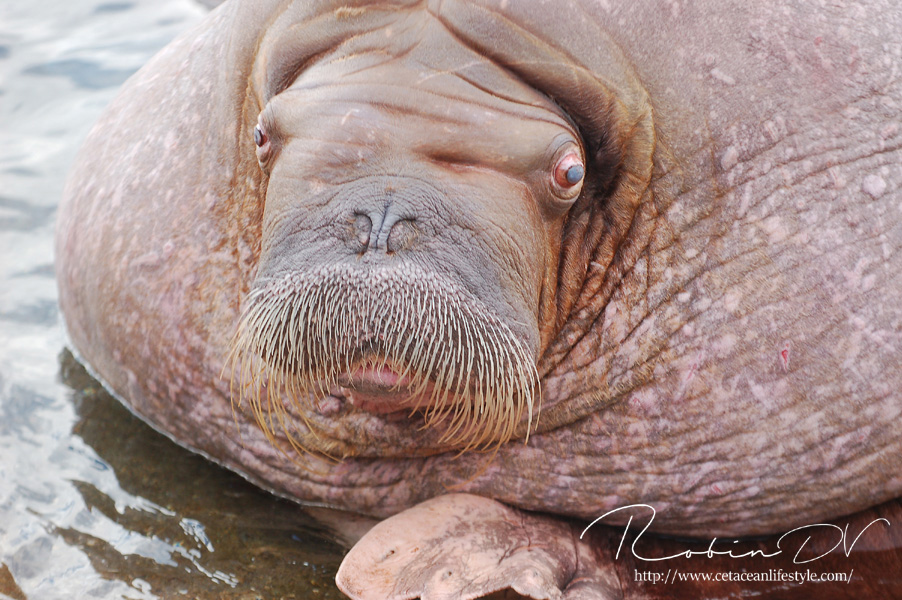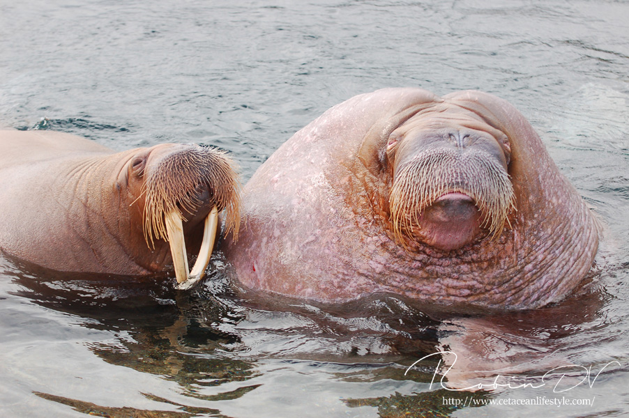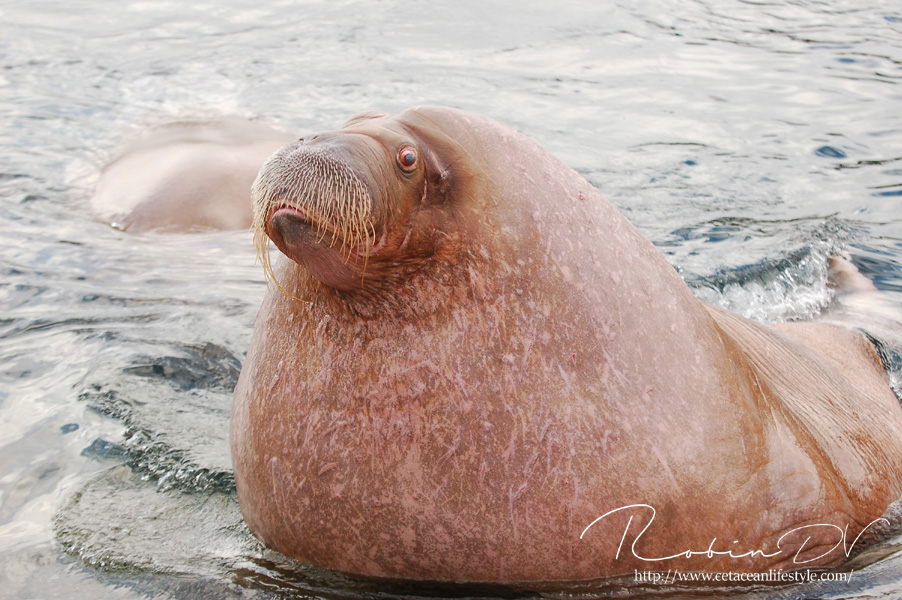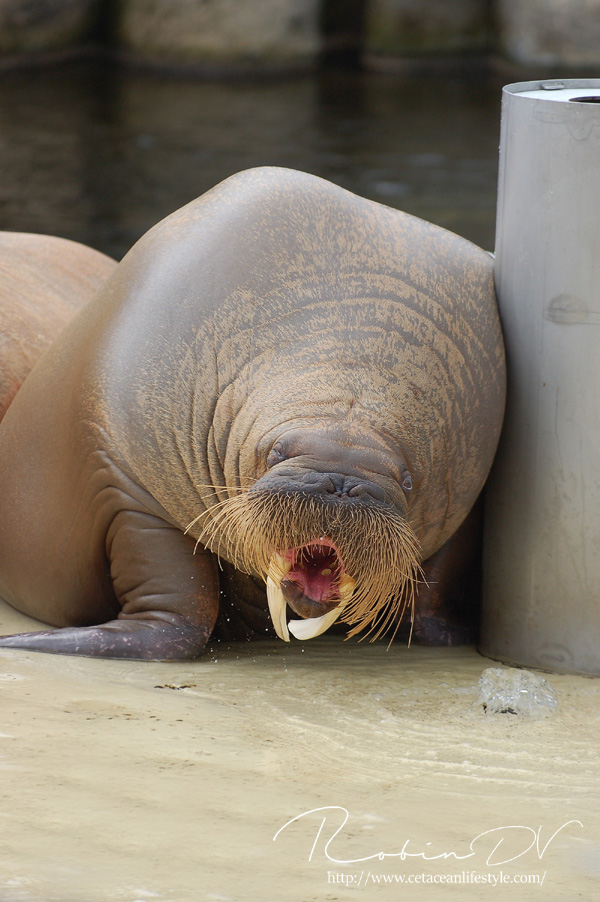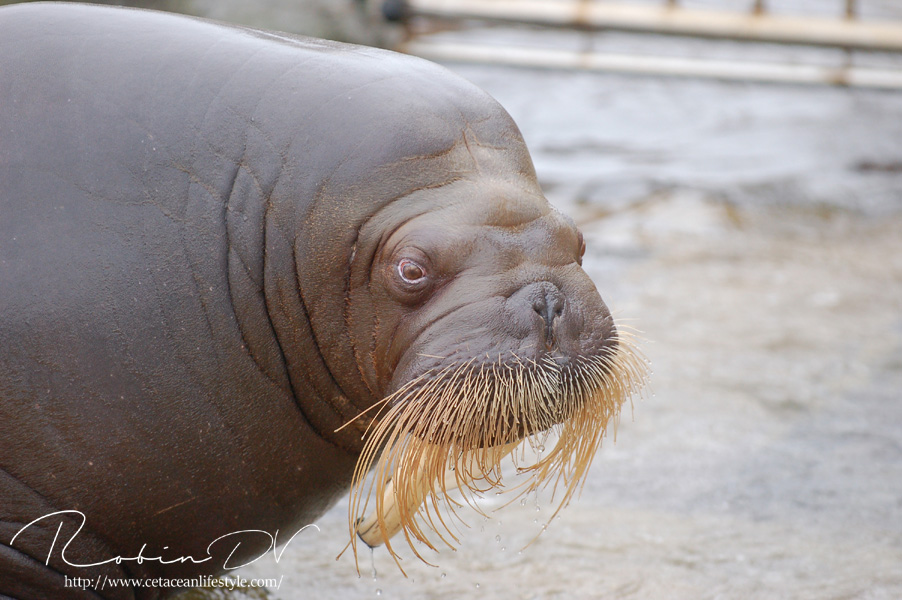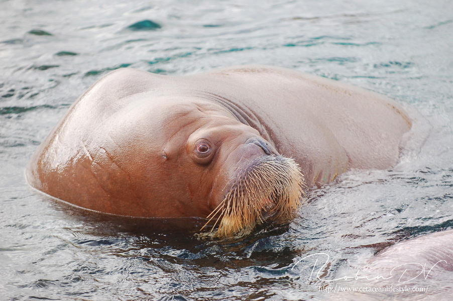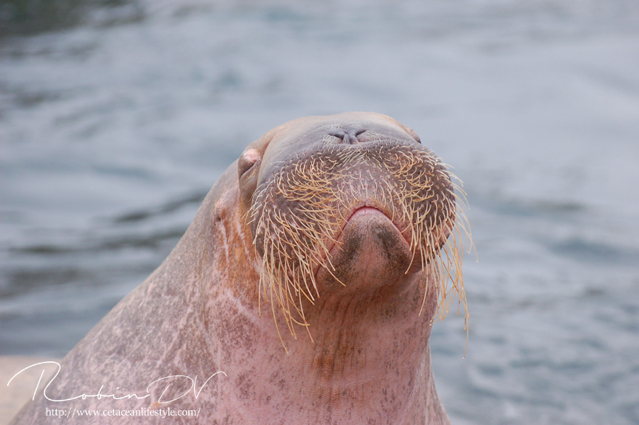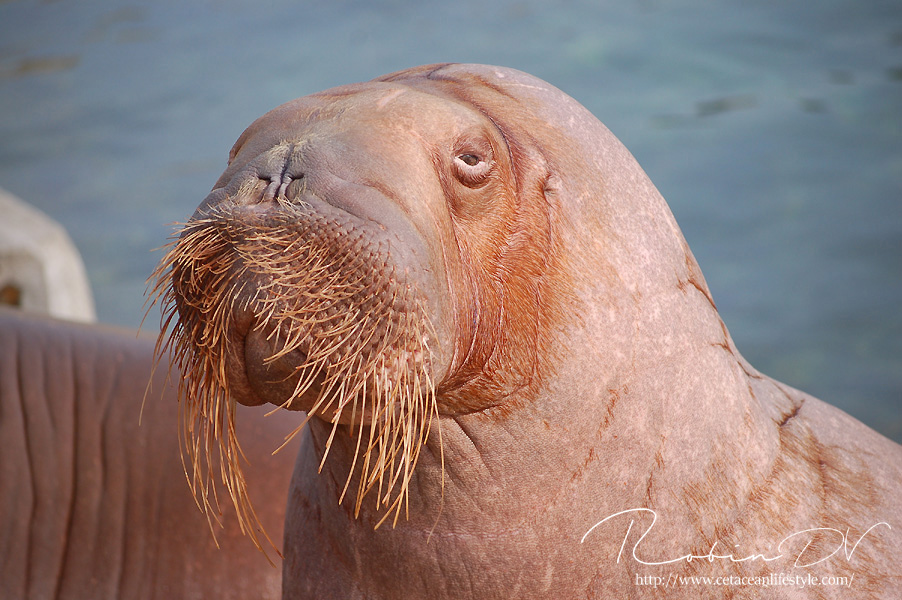De walrussen van het Dolfinarium zijn als jonge dieren naar het park gekomen. Op 8 juli 1976 opende het Dolfinarium haar walrussenverblijf: Nova Zembla. In dit verblijf kwamen drie jonge walrussen van twee jaar oud genaamd Pjotter, Katinka en Ivan. Zij verbleven sinds 1974 achter de schermen in de Koepel, nadat ze via de dierentuin van Moskou uit Siberië naar Harderwijk gekomen waren. In 1976 werden de dieren te groot en verhuisden zij naar hun eigen verblijf. Dit verblijf bevatte 260.000 liter water en had achter het droge gedeelte een aantal separatieverblijven. Qua uitstraling moest een Noordpool gebied nabootsen, met nagemaakt ijsschotsen in het water. Ook voor dit gebied werden de walrussen uiteindelijk te groot, vooral na enkele gezinsuitbreidingen! In 2005 zijn zij verhuisd naar het huidige verblijf, de walrussenwal. In het oude verblijf van de walrussen leven nu de bruinvissen. Uniek aan de groep in het Dolfinarium zijn de fokresultaten, het Dolfinarium is één van de weinige parken in de wereld die meerdere malen succesvol heeft gefokt met walrussen. Drie keer werd er een gezond jong geboren in waarvan er nu nog één in het park leeft. De walrussengroep bestaat op dit moment uit drie dieren en het Dolfinarium is hiermee dus één van maar drie parken in Europa waar je walrussen kunt zien. Boven: De walrussen in het Dolfinarium. De walrus is de grootste vinpotige ter wereld. Op drie plekken in Europa kun je deze imposante en bijzondere dieren zien.
