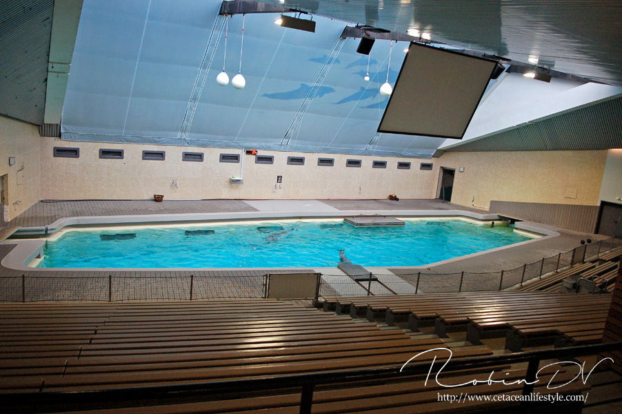 Boven: Het oude dolfinariumgebouw versus de nieuwe Dolphin Lagoon en nieuwe onderwaterruimte (laatste twee foto's). Een hele verbetering! De Dolphin Lagoon werd in 2011 geopend na een lange bouwperiode. Het oude gebouw wordt nu als achter de schermen complex gebruikt.