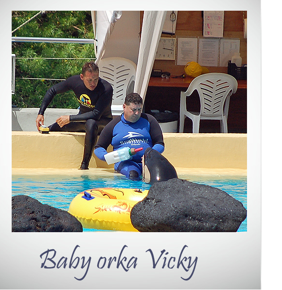 Op 3 Augustus is orka Vicky (ook wel Victoria genoemd) geboren in Loro Parque. Dit was eigenlijk nogal onverwacht. Er werd namelijk gedacht dat Kohana in Oktober zou gaan bevallen. Hierdoor begon de bevalling tijdens de laatste show! Ze verbleef gelukkig wel in het achterbassin. Helaas toonde Kohana geen interesse in Vicky, precies zoals met haar eerste jong Adán een jaar eerder. Hierdoor moesten de trainers van Loro Parque ingrijpen en Vicky met de hand voeden en ondersteunen. Vanwege de timing en het feit dat Vicky erg klein was dachten veel mensen eerst dat ze misschien te vroeg werd geboren. Dit blijkt niet het geval, aldus Loro Parque. Tijdens mijn bezoek aan het park was Vicky goed zichtbaar in de medpool. Ze leek energiek en kwam vaak hoog boven het water uit en ze speelde zelfs met de aangeboden verrijking. Meer weten over Vicky? Lees meer