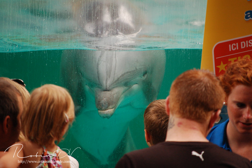Vorig jaar is dolfijn Beachie uit het Dolfinarium in Harderwijk verhuisd naar Boudewijn Seapark in Brugge, België. Hier is hij momenteel het enige volwassen mannetje en zal hij in de toekomst mogen gaan zorgen voor nageslacht. Ik zocht Beachie op in het Boudewijnpark om te kijken hoe het met hem gaat. De eerste vier dagen van zijn introductie verbleef Beachie in het achterbassin. Hier kon hij rustig wennen aan zijn nieuwe thuis. Inmiddels is hij volledig geïntegreerd. Zijn training verloopt goed al was het wel even wennen voor hem! Benieuwd naar hoe het nu gaat met Beachie??