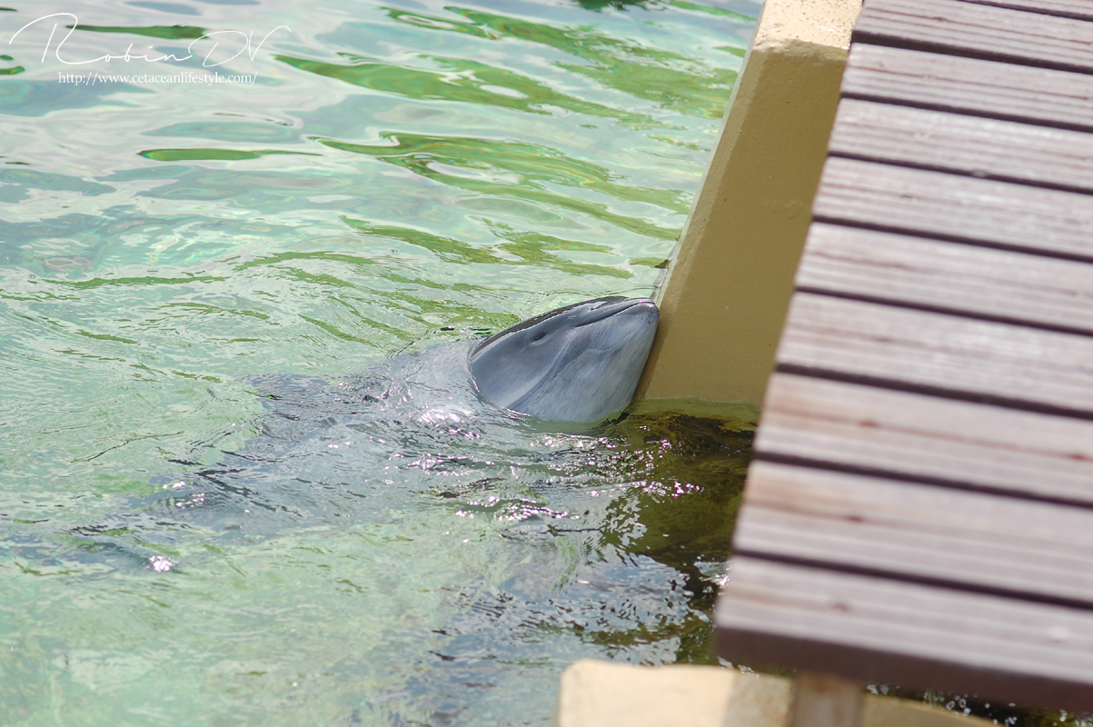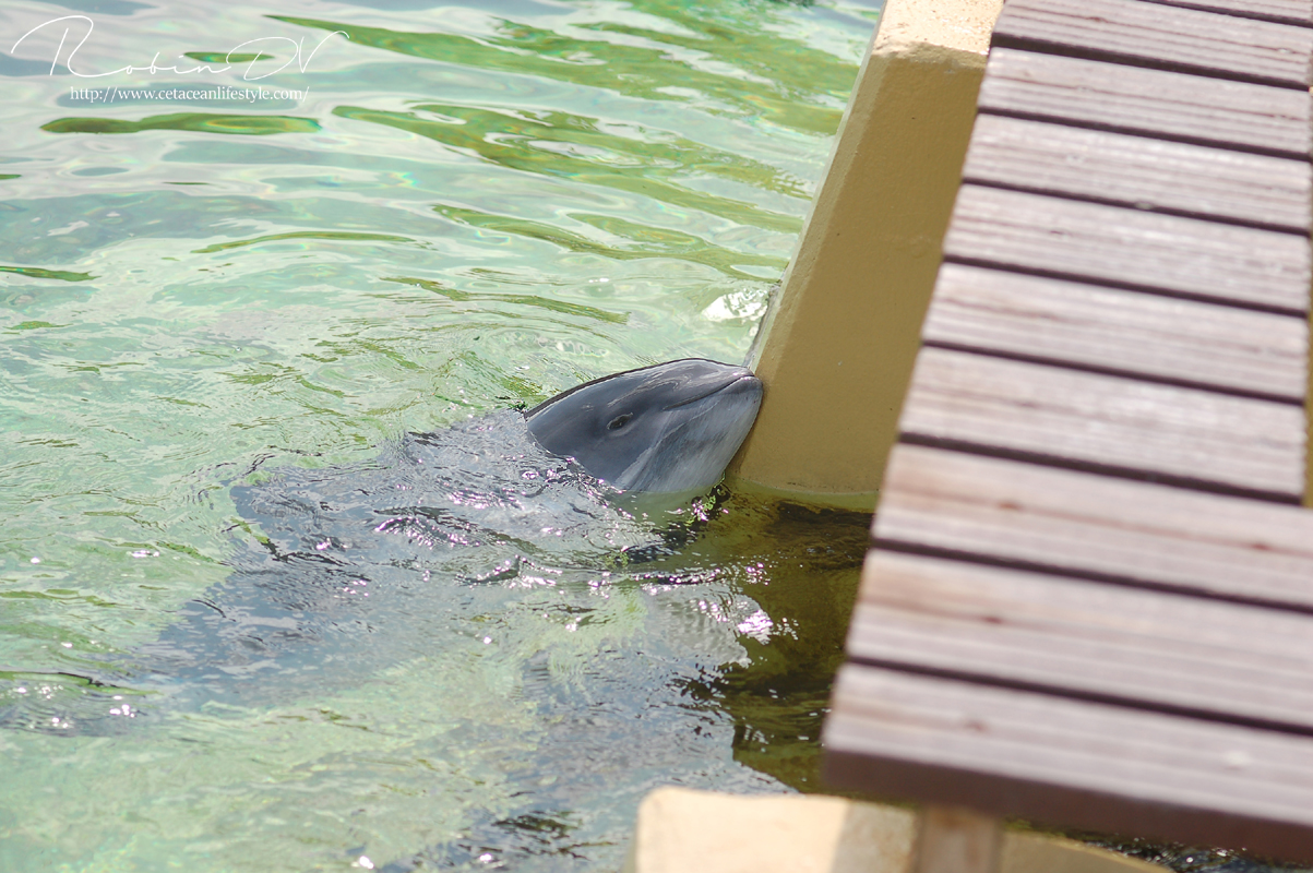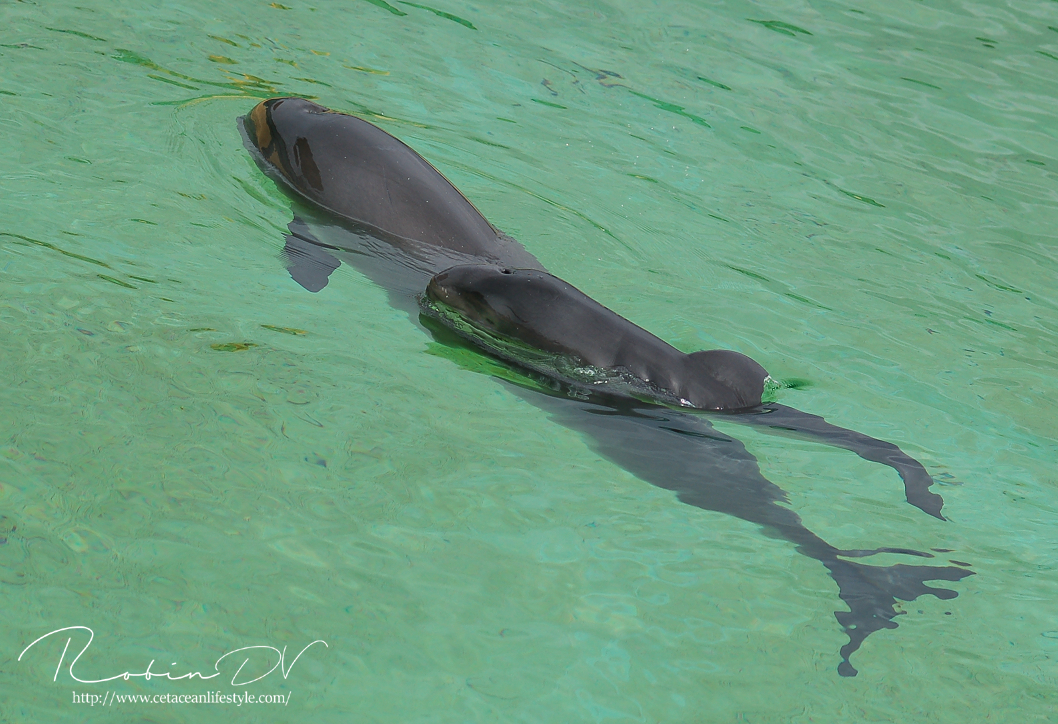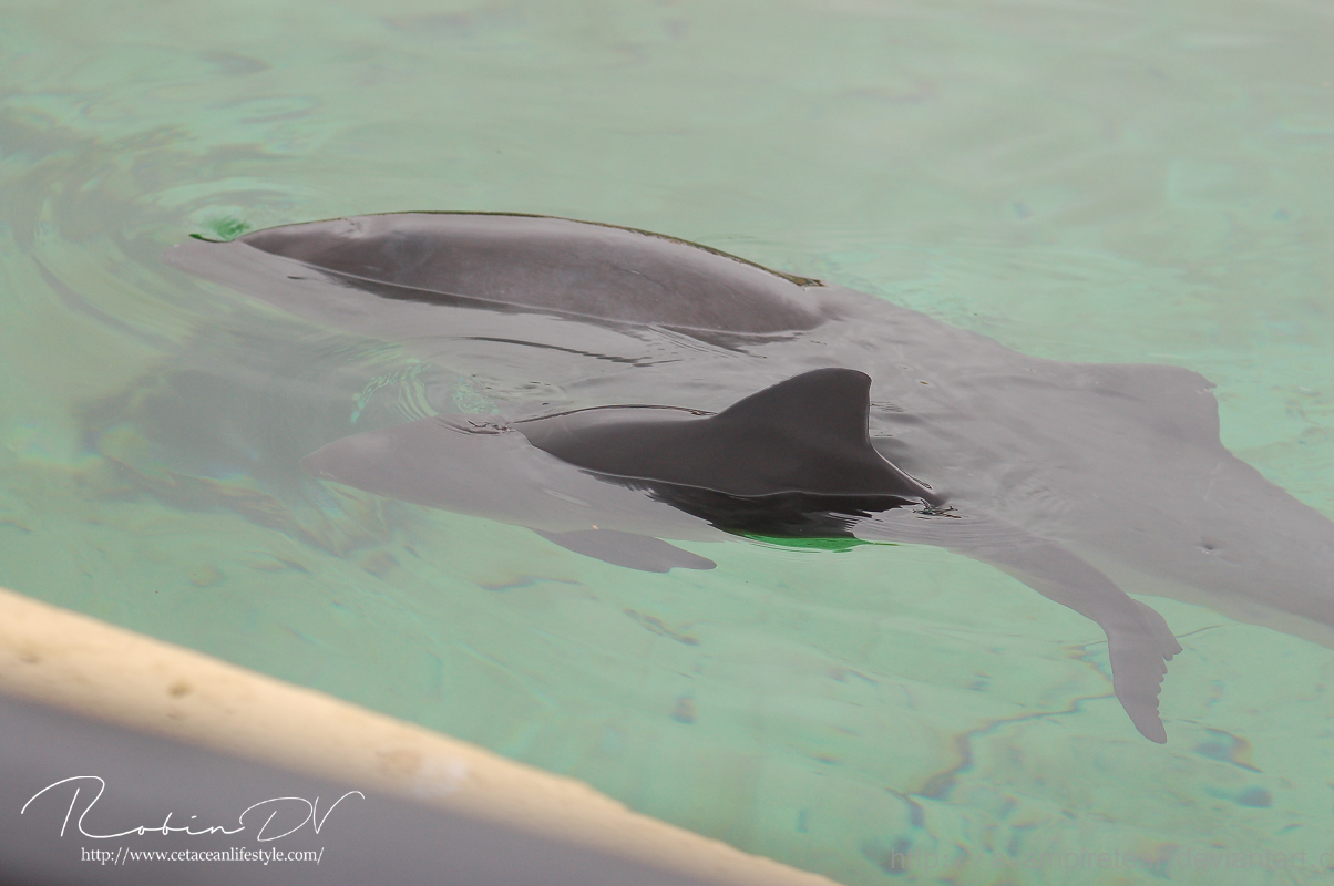 Ongeveer een half jaar geleden werd duidelijk dat de vrouwtjesbruinvissen in Bruinvisbaai drachtig waren. Dit was niet helemaal gepland. Normaal gesproken krijgen de vrouwtjes een hormoon toegediend als anticonceptie wanneer ze samen met de mannetjes zitten. Toch was het dit keer driemaal raak! In het geval van Amber werd eerder gedacht dat ze te oud was om nog drachtig te worden. Niets bleek minder waar toen Kwin in 2009 werd geboren! Parken fokken niet moedwillig met bruinvissen omdat het bijna allemaal opvangdieren zijn. Meestal met een medische geschiedenis en waarvan je de genetica niet weet. Ook leven bruinvissen in het wild solitair of in kleine groepjes. Er zijn niet heel veel parken die de dieren huisvesten, waardoor er geen overschot moet komen. Vaak wil men die ruimte vrijhouden voor eventuele nieuwe opvangdieren. Daarbij zijn het zeer specialistische dieren met een aparte verzorging, waardoor niet veel parken willen beginnen met het houden van deze soort. Ik persoonlijk vind dat ontzettend jammer omdat het één van mijn favoriete dieren zijn.