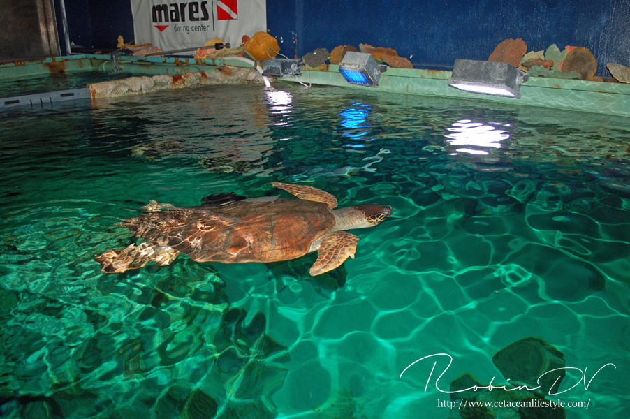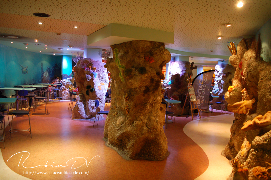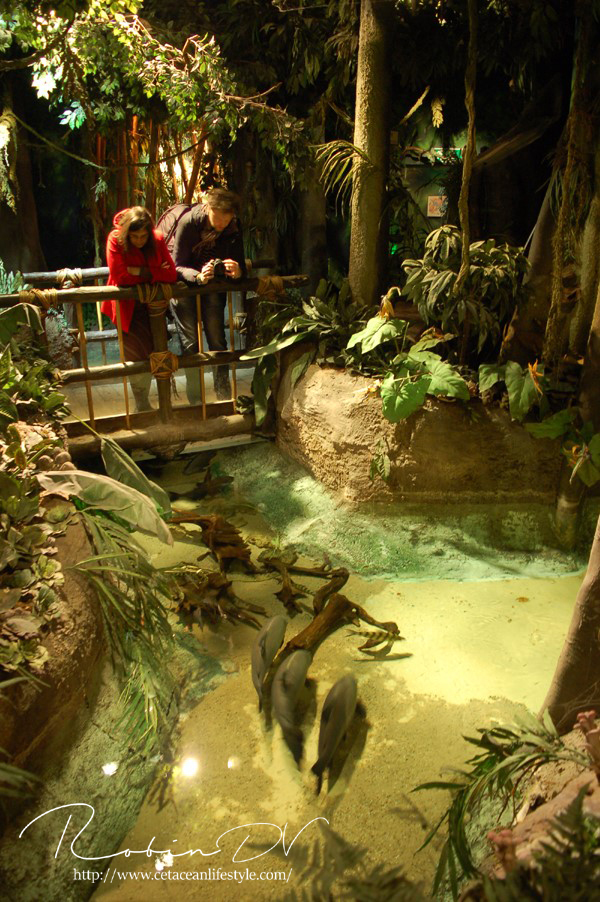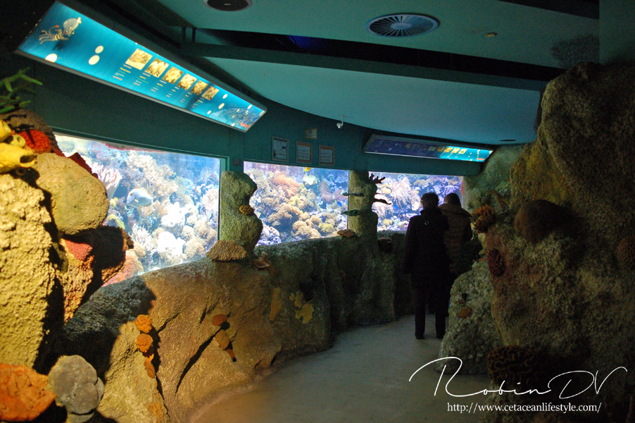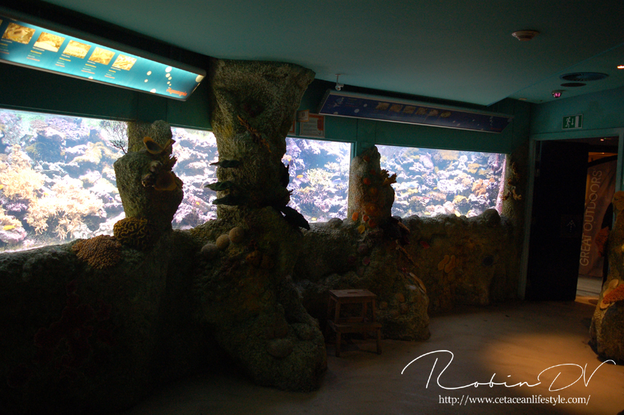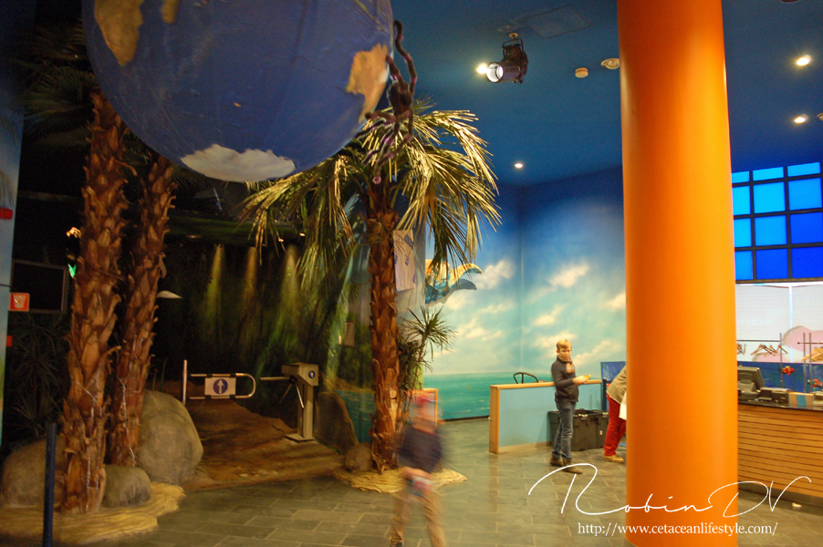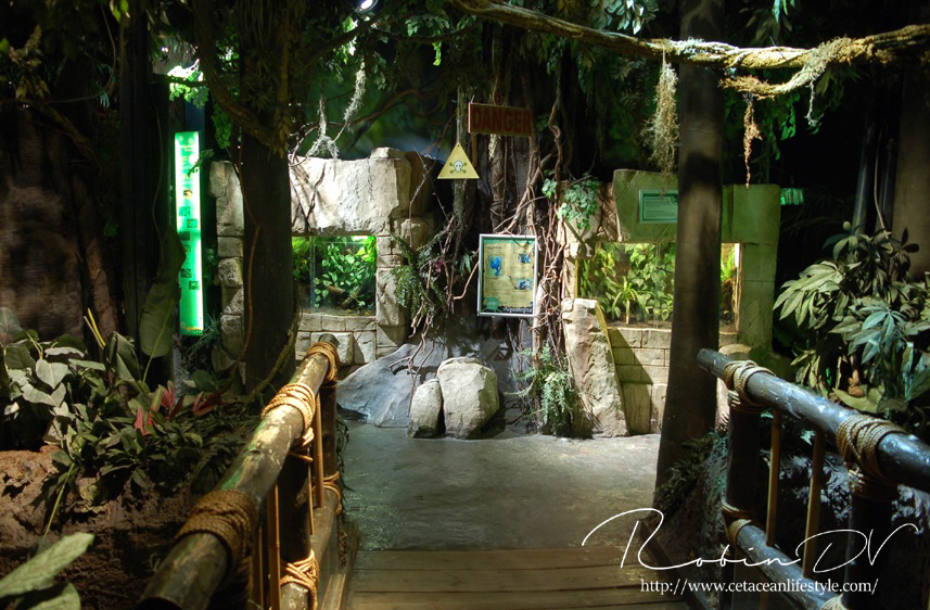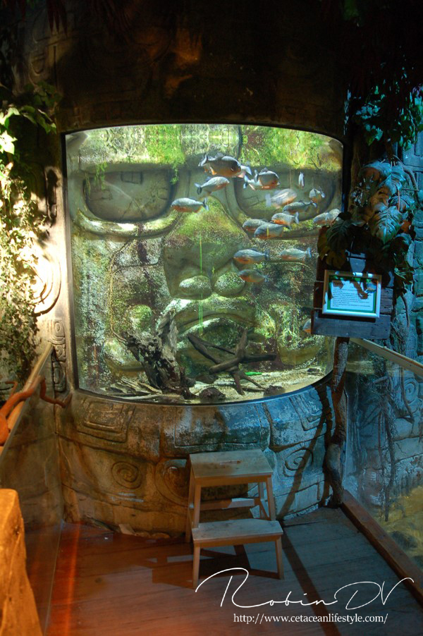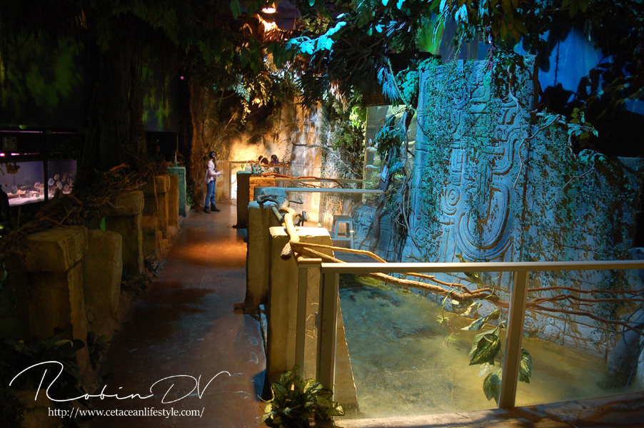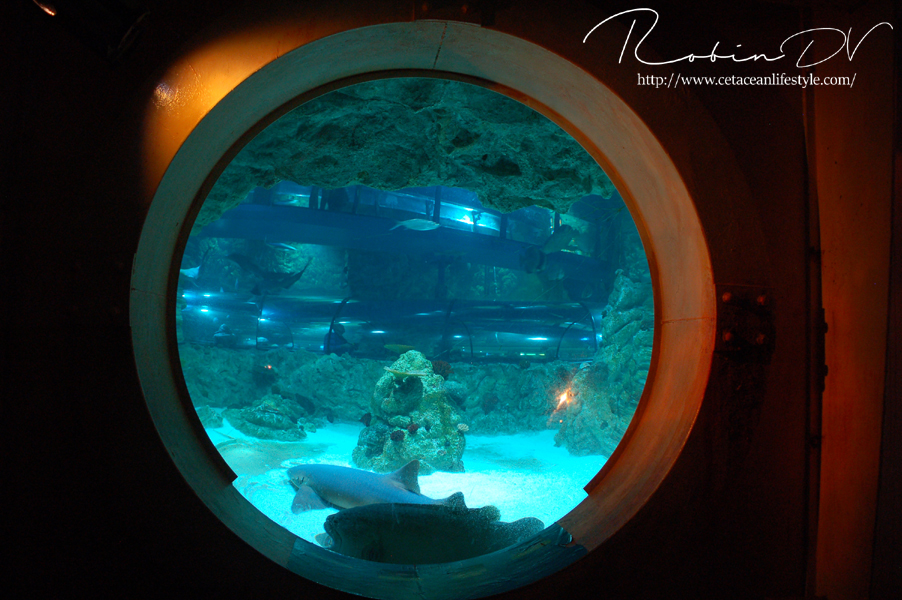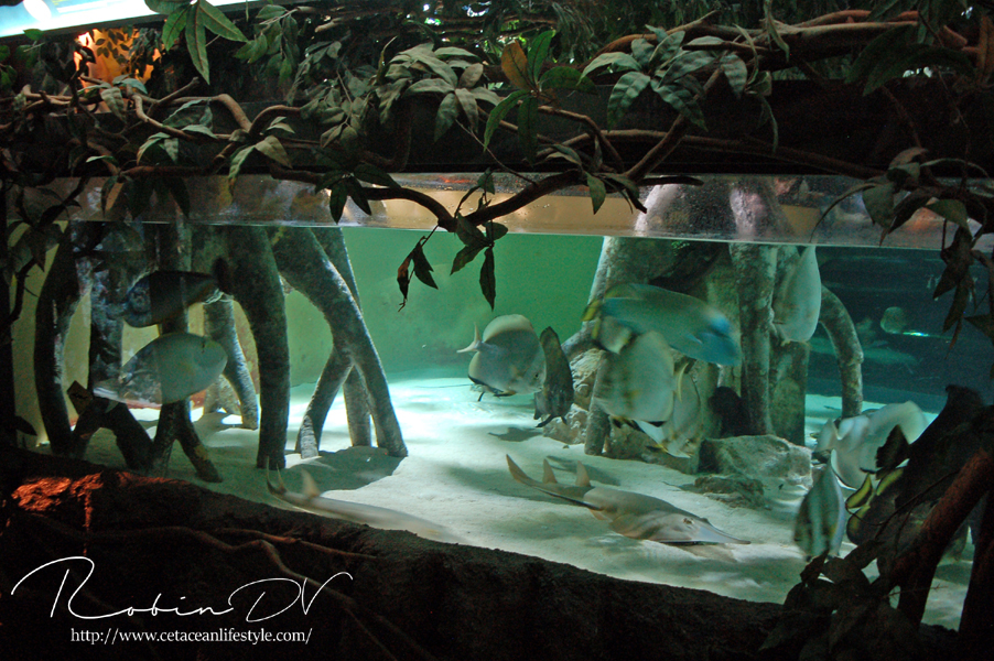 Je komt binnen in een ontvangsthal waar zich ook de kassa bevindt. Na het betalen ga je door via een gang en trap waarmee je de wereld van Aquatopia betreed. De eerste ruimte is meteen heel erg uitgebreid met tropische planten en rotswanden. Er zijn een aantal thema aquaria te vinden zoals een aquarium met een weekschildpad en een pirahna aquarium in de vorm van een tempelgod. De thematisatie houdt aan terwijl je de route door het gebouw volgt. Er zijn verschillende biotopen gemaakt, waarbij de Mangrove en het haaiengedeelte een waar pronkstuk zijn. Beide zijn grote bassins, aangevuld met kleinere bassins in een prachtig thema met zeer grote dieren. Denk aan vleermuisvissen, Napoleonvissen, zaagvissen, zeeschildpadden, haaien en enorme baarzen. De manier waarop je je voortbeweegt door het gebouw is ook heel apart; doormiddel van roltrappen en rare gangen. De vorm van het gebouw vraagt om innovatie bij het huisvesten van zoveel aquaria en dat merk je eigenlijk alleen aan de routes.