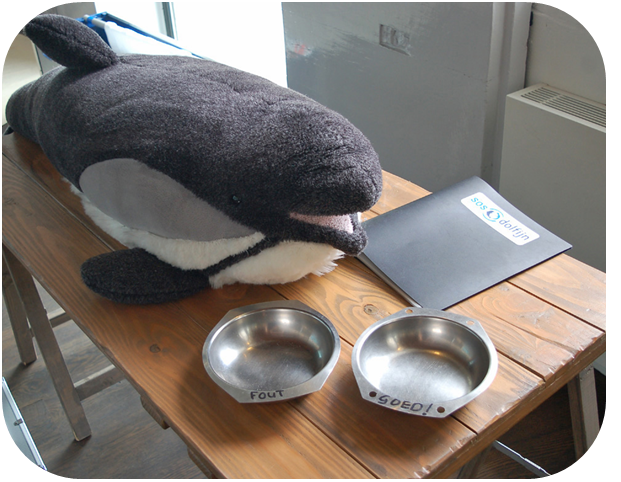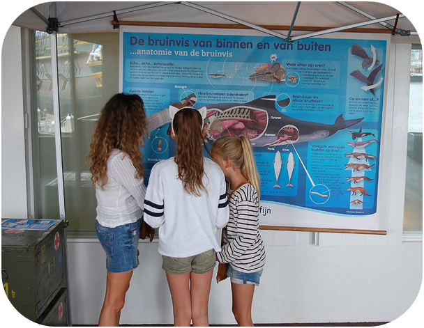 In het Reizende Walvisziekenhuis leren kinderen hoe Eerste Hulp kan worden geboden aan een bruinvis of dolfijn in nood. Met behulp van een imitatiebruinvis kunnen kinderen oefenen met het opnemen van de lichaamstemperatuur van het zieke dier, het beluisteren van de hartslag en longen en het afnemen van bloed voor controle. Ook kan een uniek kijkje worden genomen in de Dolfijnambulance waarin zieke bruinvissen en dolfijnen vervoerd kunnen worden. Wanneer de ontdekkingstocht verder gaat door het Reizende Walvisziekenhuis komt men uit bij Het Grote Gevarenspel. Dit bestaat uit een groot bord waarop verschillende plaatjes zijn afgebeeld. Het spel gaat over de gevaren die walvissen op zee tegenkomen. Aan de ene kant staan afbeeldingen van ‘oorzaken van gevaar’ en aan de andere kant staan de ‘gevolgen van dat gevaar’. Match jij de juiste plaatjes aan elkaar? Dan gaat het blauwe zwaailicht bovenaan het bord branden! Aan de andere zijde van het bord, is van alles te ontdekken over het voedselweb. Verderop in het ziekenhuis ligt op een behandeltafel een pluchen bruinvis. De bruinvis is ziek en heeft maagpijn. Kinderen kunnen via de bek van het dier voorwerpen uit zijn maag te halen. Vervolgens mogen de kinderen kiezen in welk bakje de voorwerpen thuishoren: ‘goed’ of ‘fout’. Zo is een visje natuurlijk goed voor een bruinvis, maar plastic hoort niet in zijn maag thuis en is daarom fout. Een heel leerzaam spel over de gevaren van vervuiling van de zee. In het ontdekkabinet kunnen kinderen allerlei walvismaterialen van dichtbij bekijken. Zo zijn daarin baleinen, schedels en tanden te zien en röntgenfoto’s van borstvinnen. Aan de zijkant van het kabinet kunnen kinderen door een microscoop zelfs plankton bekijken. Op de draaiblokken zijn verschillende walvisachtigen uit de Noordzee afgebeeld: de bruinvis, de witsnuitdolfijn, de bultrug en de potvis. Kinderen moeten met de andere blokken de juiste ‘weetjes’ bij het juiste dier draaien. Zo leren ze o.a. hoe groot deze dieren zijn, wat voor voedsel ze eten, welke vorm de rugvinnen hebben en hoe diep deze dieren kunnen duiken. Het reizende walvisziekenhuis is te vinden bij Ecomare en het Scheepvaartmuseum.