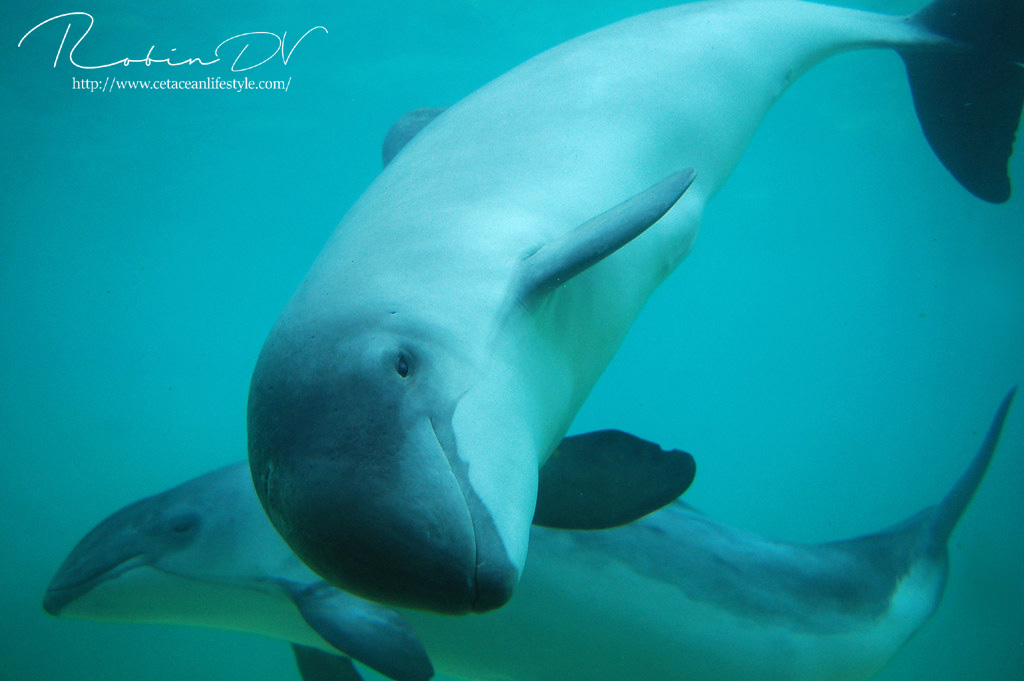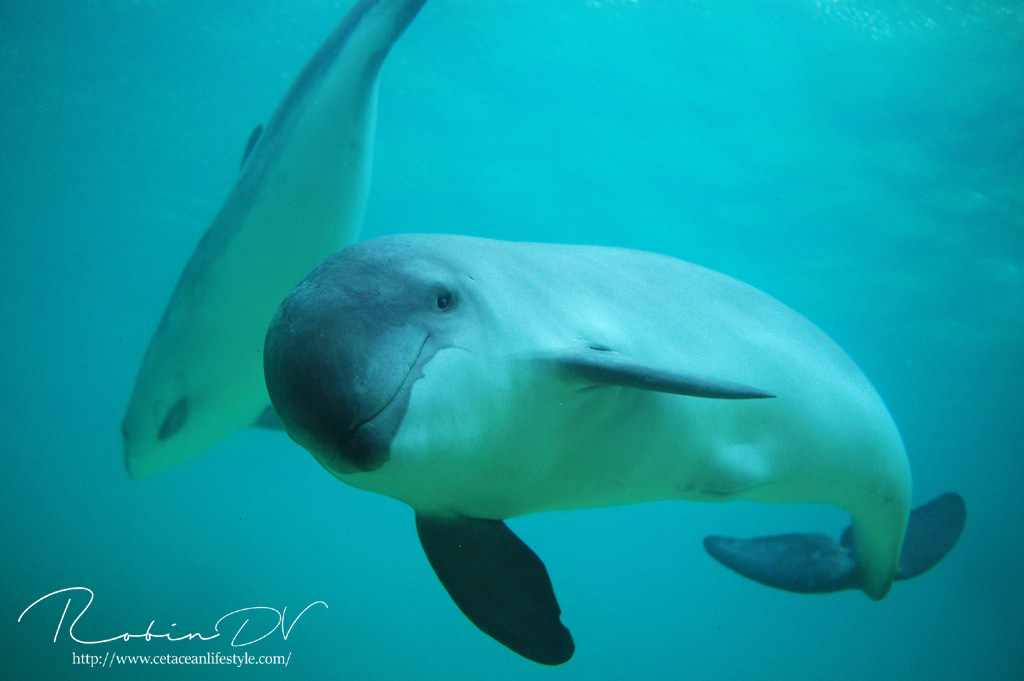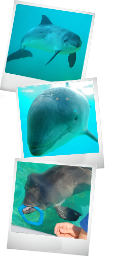 Boven: Bruinvissen Michael en Dennis, die in permanente rehabilitatie leven in Ecomare.