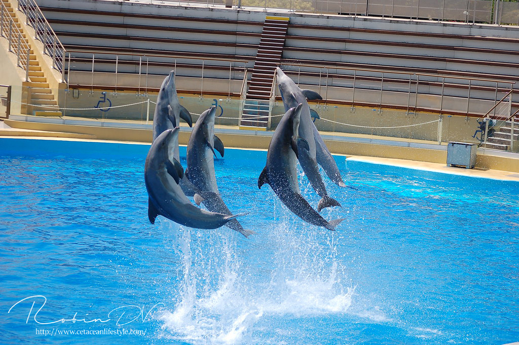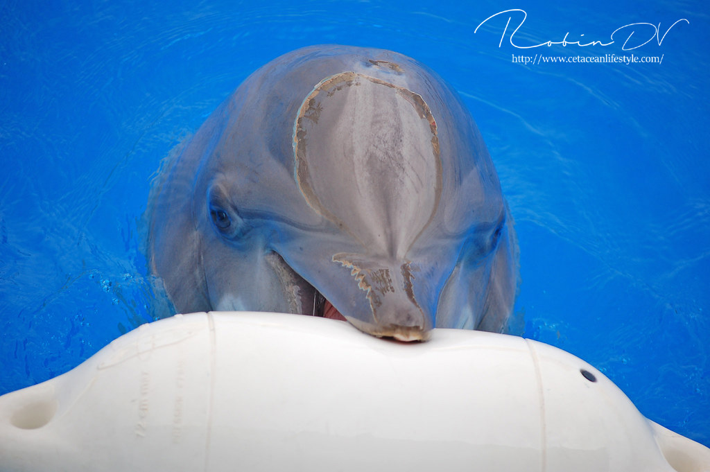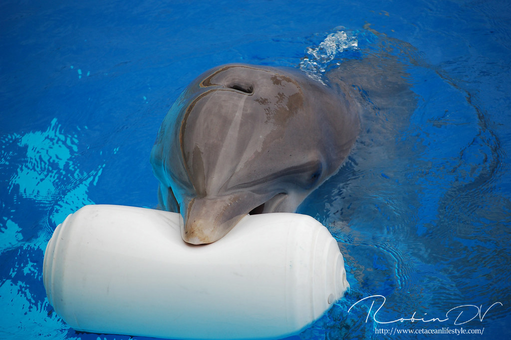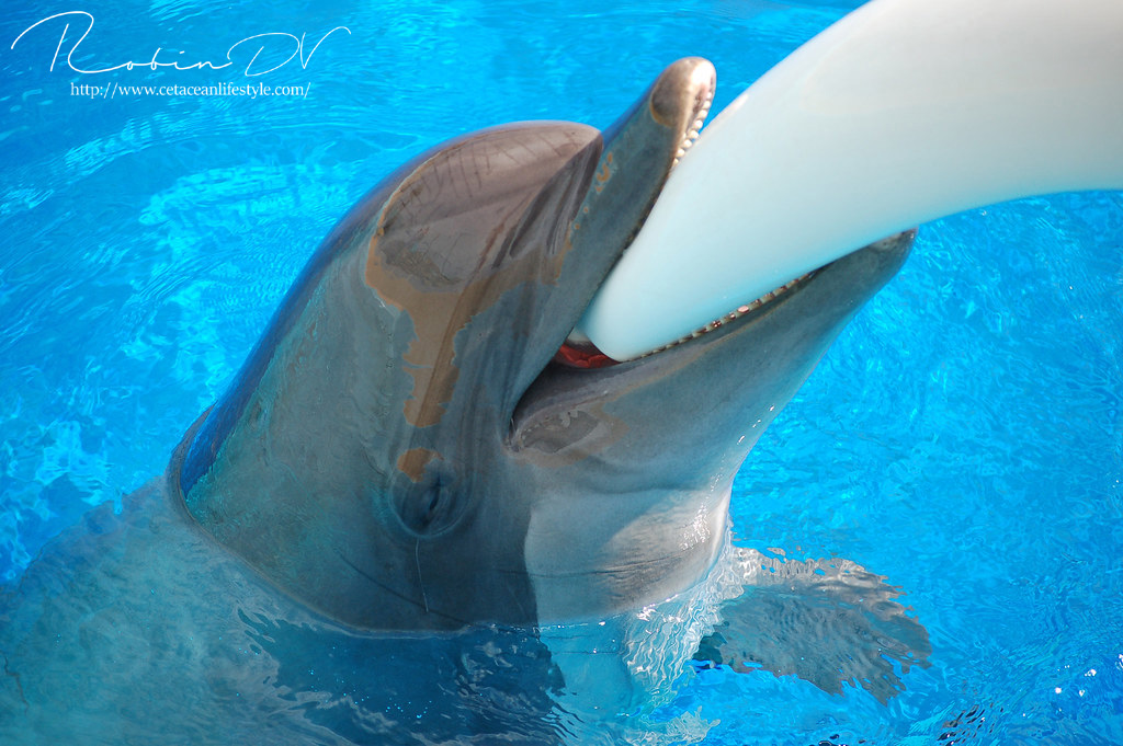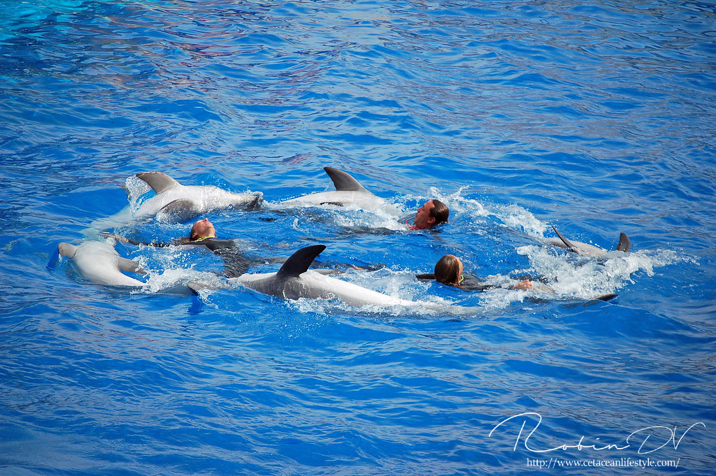 Momenteel leven er zes dolfijnen in het dolfijnenbassin: De volwassen vrouwtjes Lotty, Sharky en Malou, samen met volwassen mannetjes Rocky, Dam en het jonge mannetje Kai. Deze groep dolfijnen ken ik al heel lang! Enkele dieren al sinds ze nog in vorige parken woonde of zelfs sinds de geboorte! Het is een stabiele groep dolfijnen met een duidelijke rangorde, al wil het jonge mannetje af en toe nog wel eens voor opschuddingen zorgen. Alle zes dolfijnen doen mee aan de shows en hebben allemaal een eigen karakter en verhaal. Ik stel voor: