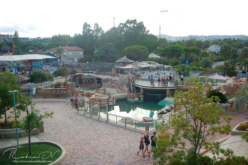 Marineland is deel van een aantal parken die allemaal op hetzelfde terrein liggen. Dit zijn het waterpark Aquasplash, een kinderpark genaamd Kid's Island (vroeger "Ferme du Far West") en een golfpark met dinothema genaamd Kid's Golf. Al deze parken zijn van dezelfde eigenaar en er zijn dan ook verschillende combo-tickets te verkrijgen zodat je meerdere parken kunt bezoeken. Al deze parken liggen aan een groot parkeerterrein. Vanaf dit parkeerterrein kun je alle parken binnen gaan. Aan de overkant van dit terrein ligt tevens de permanente kermis "Antibesland". Marineland ligt dus midden in een hotspot voor entertainment en recreatie. Deze parken zijn op zichzelf niet zo groot, er wordt dus vanuit gegaan dat je een comboticket koopt. Zo kun je bijvoorbeeld gaan zwemmen in Aquasplash en wanneer het tijd is voor de shows in Marineland kun je letterlijk bij het andere park naar binnen lopen. Ik zelf kan me een hele dag vermaken in Marineland alleen, maar dat komt natuurlijk ook omdat ik fan ben van zeedieren en ook nog uitgebreid fotografeer. Sinds een aantal jaren ligt achter in Marineland nog een apart 'park'. Dit is "Marineland Lagoon". Hier kun je zwemmen waarbij dolfijnen vlak langs je afzwemmen achter een glaswand. Marineland zelf is al meerdere keren van uitstraling veranderd sinds ik er kom. De laatste keer was na de overstroming van 2015. Dit heeft zo veel schade aangericht dat het letterlijk nog niet zeker was of het park weer open kon. Gelukkig is dit wel het geval geweest! Momenteel heeft Marineland een veel serieuzere uitstraling dan voorheen. De opvallende kleurtjes hebben plaatsgemaakt voor bruintinten en zandkleurige paden/hekken. Steen en houtthema's worden gebruikt bij de verblijven, wat alles een veel natuurlijkere uitstraling geeft. Educatie staat ook meer dan ooit voorop, met verschillende nieuwe borden en educatiepunten. De popmuziek heeft plaatsgemaakt voor rustige, instrumentale muziek en ook de shows zijn meer gericht op educatie dan vermaak.