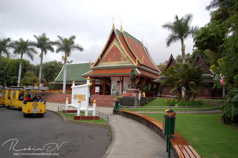 Over de uitstraling van Loro Parque kan ik alleen maar positief zijn. Voor mij persoonlijk (en ook velen met mij delen deze gedachte) is dit de mooiste dierentuin ter wereld! Werkelijk alles is tot in de puntjes verzorgd. Het hele park staat bomvol prachtige planten en perken. De dierenverblijven zijn ruim en zeer mooi gethematiseerd en alles is zeer schoon. Er wordt dagelijks heel hard gewerkt door het personeel om te zorgen dat alles er perfect uitziet. Ik heb personeel letterlijk met tandenborstels de roosters van de roltrap zien schoonmaken bij een bezoek!. Iedere dag worden de verblijven verschoond en schoongespoten en de tuinen gesnoeid en verzorgd. Wanneer je in Loro Parque loopt waan je je in een oase van prachtige bloemen, planten, dieren, geuren en geluiden. De ingang is een exacte replica van de gebouwen uit een traditioneel Thais dorp. Loro Parque is de enige die toestemming kreeg om deze, in Thailand vervaardigde gebouwen buiten het land zelf tentoon te mogen stellen. In het hoofdgebouw is zelfs bladgoud verwerkt. Meneer Kiessling heeft een sterke band met Thailand, wat in al zijn parken terug is te zien in de uitstraling. Direct na de ingang wordt je begroet door een weelderige muur van begroeiing, waardoor het lijkt of je een oerwoud gaat betreden. Vanaf dit punt kom je binnen in de wereld van Loro Parque.