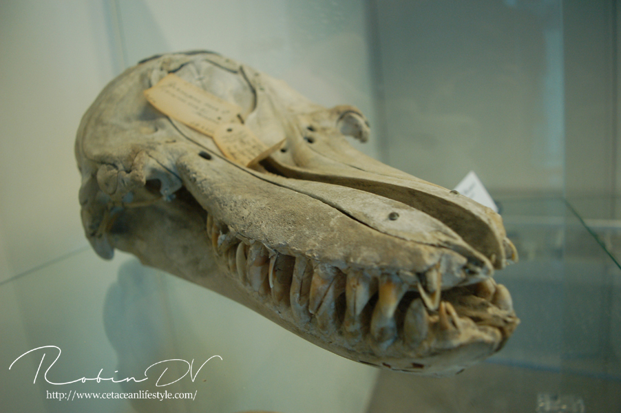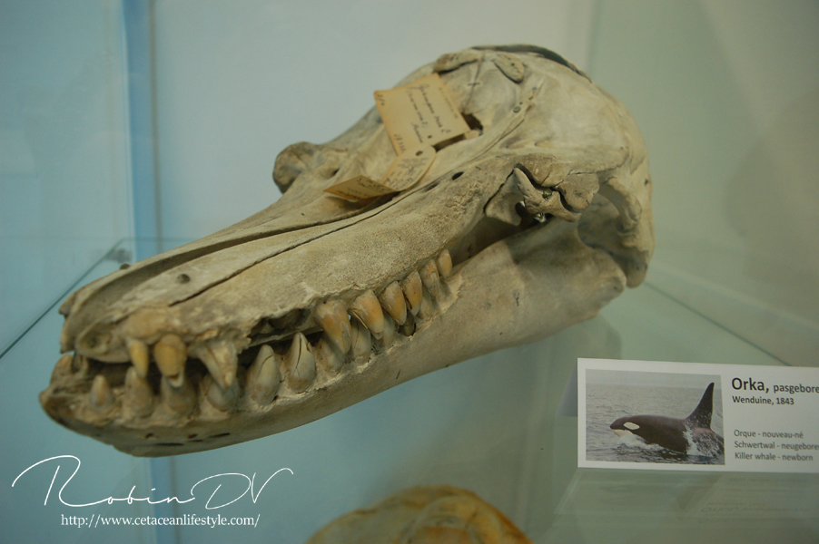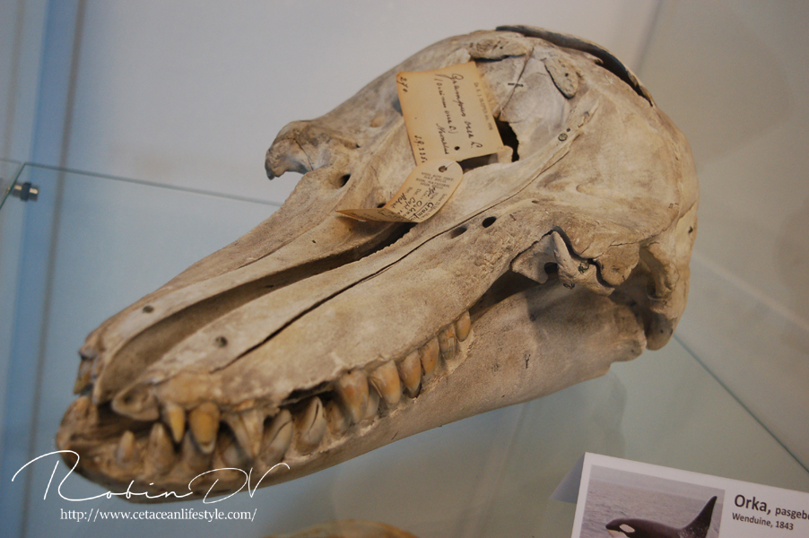 Vorig najaar spoelde het gigantische lichaam van vinvis Antonius aan in Vosseslag (De Haan) in België. Tijdens een leuke en leerzame zomerexpo werd het verhaal van deze vinvis verteld. Blikvangers waren de indrukwekkende kaken en enkele skeletten van kleinere walvissen. Mijn absolute reden om te gaan kijken waren de zeldzame en zeer oude orka botten! Namelijk twee schedels van een in 1843 bij ons aangespoelde moeder-orka met haar jong. Er lagen nog veel meer gave botten en objecten in bruikleen. Ik heb hier een aantal foto's van gemaakt.