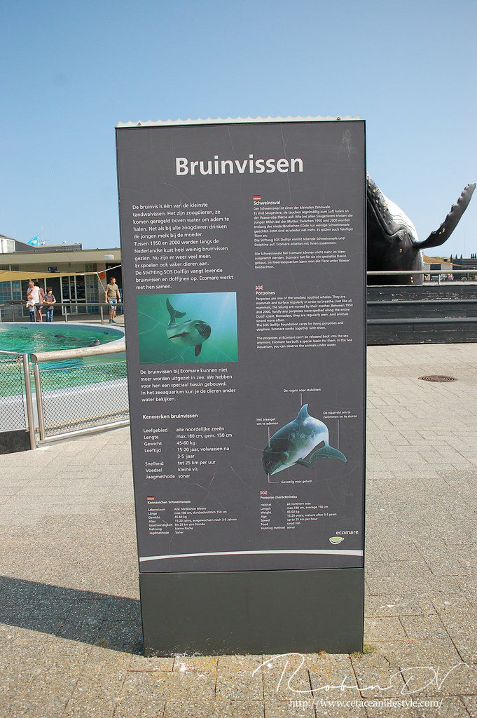 Zoals ieder jaar stond ook Ecomare weer op de planning. Dit kleine maar zeer interessante opvangcentrum, ( én museum én aquarium) op het Waddeneiland Texel is het thuis van bruinvissen Michael en Dennis. Ecomare is sinds 2012 een permanente opvang voor deze diersoort. Michael en Dennis komen oorspronkelijk uit het wild. Zij zijn in het verleden opgevangen door SOS Dolfijn en konden niet terugkeren naar het wild. Zij leven nu samen in één verblijf bij Ecomare. Het houden van bruinvissen is niet simpel; er komt veel bij kijken en er zijn weinig parken die eraan beginnen.