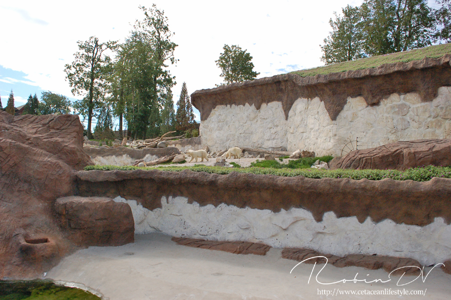 The Land of the Cold bestond al sinds 2016, in een kleinere vorm. Oorspronkelijk was in dit gedeelte enkel een weide met bizons te vinden, maar sinds 2016 is het gebied uitgebreid met een groot Russisch restaurant, een hangar met een Amerikaans watervliegtuig en een bijbehorend museum. Ook waren er al kleinere/simpele verblijven voor wasberen, stinkdieren, wapiti's en rendieren. In 2019 en 2020 werd het gedeelte echter uitgebreid met verblijven voor Siberische tijgers, walrussen, pinguïns en ijsberen, wat het nu tot een volwaardig themagebied maakt. De ijsberen en walrussen zijn ook onderwater te zien in een prachtig complex dat via een mijnschacht naar een gigantische ijsgrot loopt. The Land of the Cold geeft voornamelijk het Amerikaanse Arctische gebied weer met klassieke thema's zoals sneeuw, ijs en grotten, maar je ziet ook Scandinavische invloeden en hints naar andere 'koude' gebieden. Een soortgelijk thema was vroeger te vinden in Zoo Duisburg in de achterste hoek van het park waar lynxen, rendieren, zeehonden, Arctische wolven. poolvosjes. ijsberen, zeeolifanten, pinguïns en zeeberen werden gehouden. Een aantal van deze soorten kun je hier nog steeds vinden, maar het thema is inmiddels verwaterd. Pairi Daiza is de enige dierentuin die ik kan bedenken die zo'n groot gebied heeft dat volledig in het teken is van 'koude' dieren. Het themagebied the Land of the Cold heeft ook wel wat weg van Hagenbeck's "eismeer". Hier leven ook walrussen en ijsberen met een onderwaterzicht. Dit zijn dan ook echt de twee hoogtepunten van het gebied! De ijsbeerzusjes Nuka en Qilak arriveerden in maart. Beide dieren werden in 2016 geboren in het Deense dierenpark Aalborg Zoo. Later volgde een mannetje uit de Zoo van Budapest. Oorspronkelijk kwam hij uit Moscow Zoo en is daardoor genetisch erg interessant. De eerste walrussen arriveerden 14 maart 2020. Dit zijn een vijf-jaar oud mannetje genaamd Thor en een 16 jaar oud vrouwtje genaamd Petrushka. Zij worden in de toekomst vergezeld door de vrouwtjes Tanya en Ninotchka. De drie vrouwtjes leefden voorheen in L'oceanografic Valencia en arriveerden in december 2019 in Hagenbeck's Tierpark in een poging de vrouwtjes drachtig te krijgen door de fokstier van Hagenbeck's Tierpark genaamd Odin. Er zijn inmiddels verschillende paringen waargenomen sinds de vrouwtjes in het Duitse park verblijven. Petrushka is samen met Thor, een van de jonge mannetjes uit Hagenbeck's Tierpark als eerste doorgereisd naar Pairi Daiza. De hoop is dat de dames snel jongen krijgen, mocht dit niet lukken dan gaan ze waarschijnlijk nog eens terug op fokleen naar Zoo Hagenbeck. The Land of the Cold is een indrukwekkende en grote themawereld die nu helemaal compleet is met deze nieuwe diersoorten als als aanwinst.