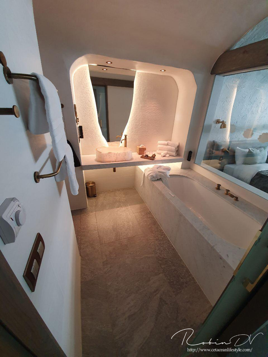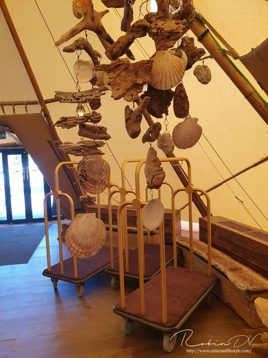 Wat deze twee themagebieden, naast de prachtige stijl zo geweldig maakt is dat er ook een resort is gebouwd dat bijna midden in de dierenverblijven ligt. Hier kun je verschillende hotelkamers huren met een bijbehorend thema en direct zicht op de dieren! Je kijkt zo uit over de verblijven of zelfs recht in de verblijven! In het geval van de walrussen en ijsberen heb je zelfs een privé glaswand met onderwaterzicht. Dit zijn de twee nieuwste opties uit het resort en ze zijn pas sinds 8 juni in gebruik gegaan. Uiteraard wilde ik in de walruskamer verblijven! Deze hebben we voor mijn verjaardag geboekt. Het was even spannend of de grenzen weer open mochten, maar uiteindelijk heb ik op mijn verjaardagsweekend mogen overnachten in dit geweldige resort. "The walrus house" zoals mijn deel van het resort heette maakte al haar beloftes waar. Oog in oog staan met de walrussen als je wakker wordt.. Wat een ervaring!! Op social media waren al eerder filmpjes te zien van deze kamers waarbij de walrussen heel dicht bij het glas komen. Dit is dus niet alleen zo voor de filmpjes, de dieren komen echt naar je toe! We kwamen zelfs nauwelijks nog van ze af hahaha! Met name het jonge mannetje Thor is heel speels en komt regelmatig kijken. In ons geval klapte hij heel hard op de glaswand, maakte hij salto's, begon hij te blazen op het raam en trok hij letterlijk alles uit de kast om onze aandacht te krijgen. Het vrouwtje Petrushka vond het leuk om in het donker ineens bij het raam omhoog te zwemmen en dan heel hard op het raam te duwen om ons te laten schrikken. Ook begon ze haar kin over de glaswand te wrijven waardoor je allemaal piepende geluiden hoorde. Op elk moment van de dag was er wel even een interactie met de dieren, echt werkelijk een droom. De kamers waren ook ontzettend luxe. Helemaal in thema en met allerlei extra luxes zoals een massage en jacuzzi-optie in het bad, elektrische schermen die je omhoog en omlaag kunt doen, een regendouche, de dekens, handdoeken en badjassen waren heerlijk zacht en het bed en de kussens van hele goede kwaliteit! Je verblijf wordt tot in de puntjes verzorgd. Bij de prijs inbegrepen zit iedere avond een diner en iedere ochtend een ontbijt (in thema, zoals bijvoorbeeld Amerikaans buffet als ontbijt), gratis toegang tot het park op de dag van aankomst, de dagen van verblijf én de dag dat je vertrekt, gratis parkeren, een klein welkomstgeschenk en gratis wifi! Je hoeft nergens aan te denken en alleen maar te genieten. Allemaal in stijl. Ik kreeg zelfs slingers en een verjaardagstaart! Het team is echt super attent en doet er alles aan om jouw verblijf zo aangenaam mogelijk te maken. Al deze luxes komen uiteraard met een prijskaartje, met name in het hoogseizoen is het behoorlijk prijzig, maar denk eraan dat er heel veel inbegrepen zit! Daarbij krijg je nog een aantal exclusieve mogelijkheden als hotel gast: Je hebt 24/7 toegang tot de twee themagebieden "The last frontier" en "Land of the Cold". Dit betekent ook echt altijd toegang. Wil je midden in de nacht naar de ijsgrot dan kan dat! Wil je om zes uur in de ochtend naar de ijsberen? Geen probleem! In ons geval was er geen toezicht en liep je letterlijk alleen door de themagebieden. De grotten zijn dan ook nog prachtig verlicht, echt een unieke ervaring! Ook mag je één uur voor openingstijd de rest van er park in. Dan kun je dus voor de drukte jouw favoriete delen bezoeken. Als hotelgast betreed je het park ook via het themagebied waar je verblijft en je vermijdt zo dus ook de drukte bij het reguliere entreegebied.