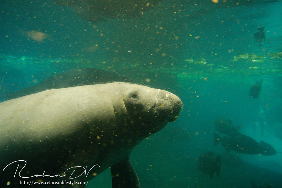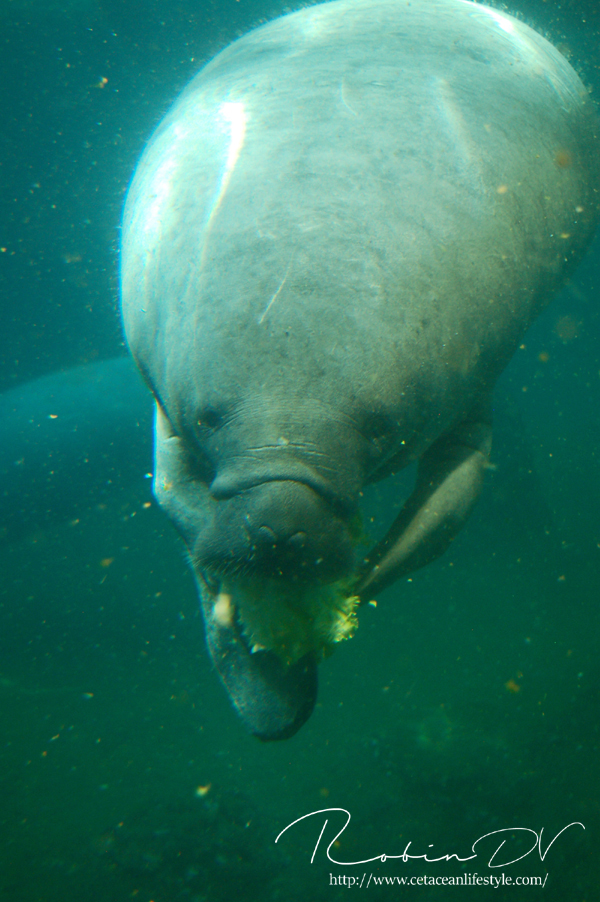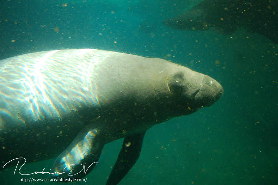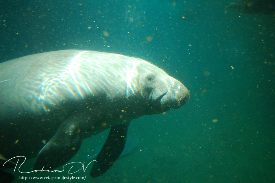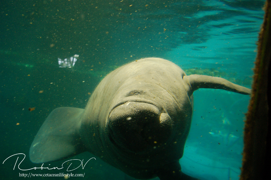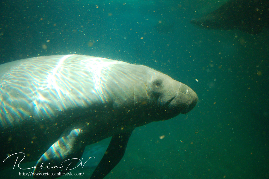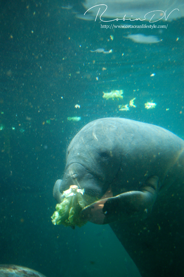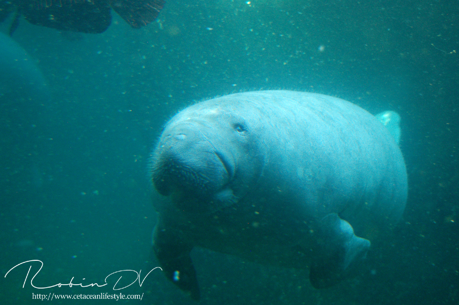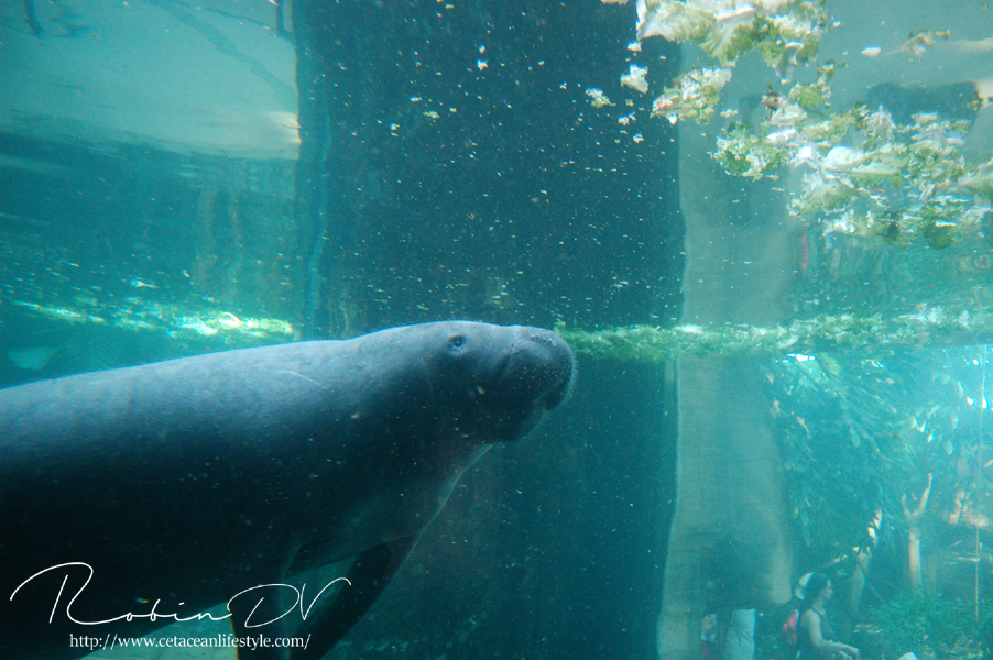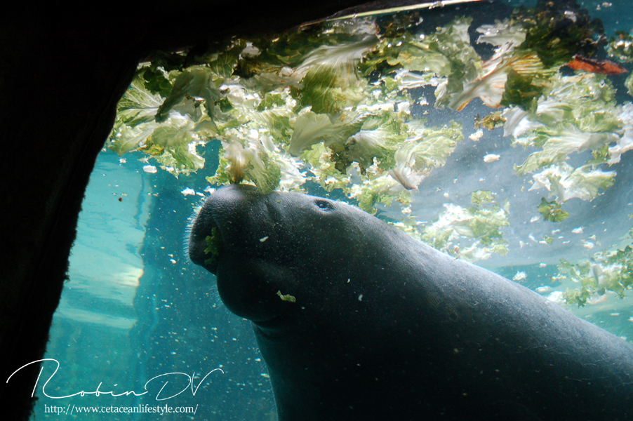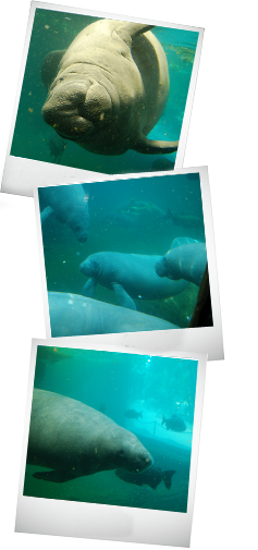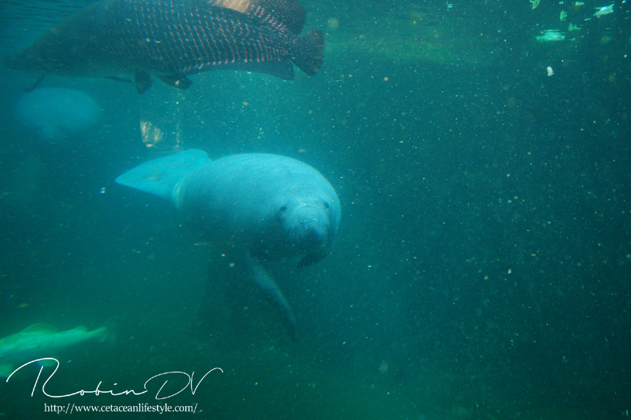 Boven: Zeekoeien uit Beauval waaronder het vrouwtje Femore. Er leven 15 dieren in le Dôme Equatorial; de grootste groep van Europa.![]()