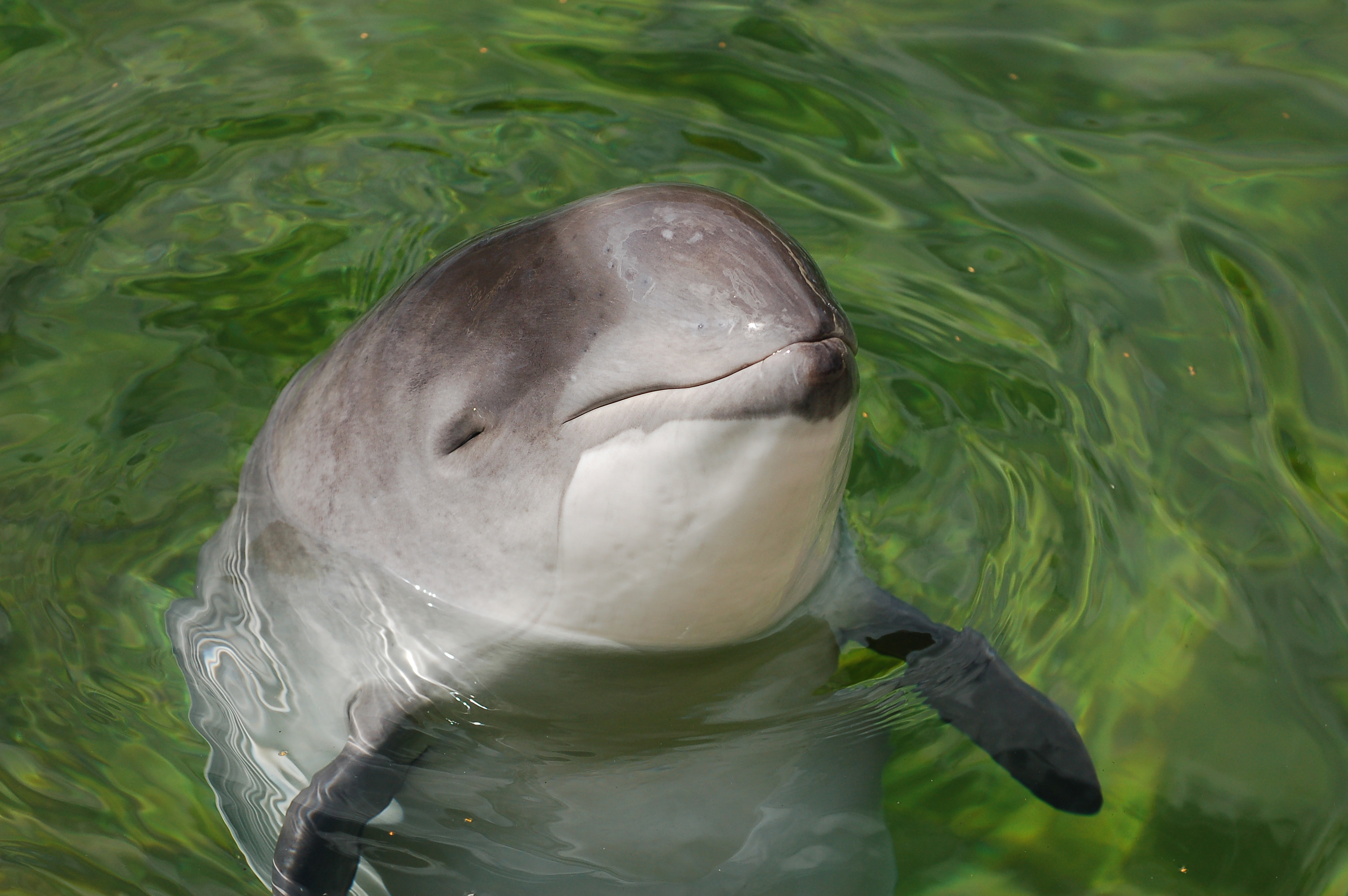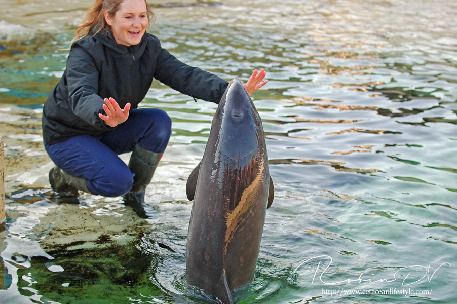 Hoewel ze er dus veel op lijken, zijn bruinvissen geen dolfijnen. Het zijn kleine walvisachtigen. In gedrag zijn ze ook heel anders dan de bekende tuimelaardolfijn. Vandaag stel ik jullie voor aan deze fascinerende kleine walvissen en de groep die in het Dolfinarium leeft! Boven: De bruinvis. Een inheemse, kleine.tandwalvis die je in Europa maar op twee plekken in een dierenpark kunt zien. Namelijk in Denemarken en in het Dolfinarium in Harderwijk. Alle dieren in het Dolfinarium zijn voorheen opgevangen en verblijven nu in permanente rehabilitatie.