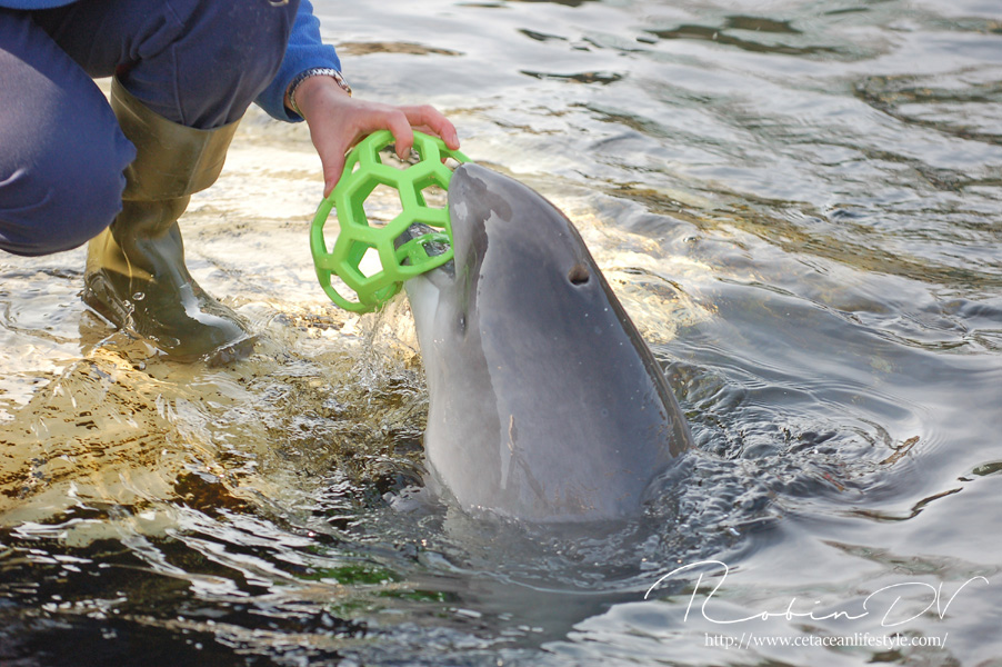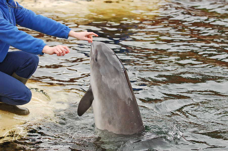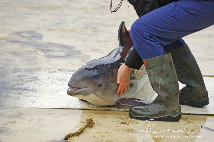 Bruinvissen zijn één van mijn favoriete dieren! Iedereen denkt altijd dat dolfijnen of orka's mijn favorieten zijn, maar de bruinvissen hebben echt een speciale plek in mijn hart. Je kunt ze in Europa maar op twee plekken zien; het Dolfinarium en Fjord&Bælt Center in Denemarken. Ook zijn er sporadisch bruinvissen te zien in het opvangcentrum van SOS Dolfijn in Dierenpark Hoenderdaell. Nog niet zo heel lang geleden waren er drie plekken in Nederland met bruinvissen. het Dolfinarium, Ecomare en onderzoekslab SEAMARCO. Inmiddels zijn de bruinvissen uit Ecomare terug verhuisd naar Harderwijk en is het laatste dier in SEAMARCO overleden. Om deze interessante kleine zeezoogdieren te zien zul je dus naar Harderwijk of Denemarken moeten reizen, of als je geluk hebt kun je ze zien in onze eigen Noordzee en Waddenzee, daar komen ze namelijk veelvuldig voor! Bruinvissen in zijn kleine walvisachtigen. Ze zijn een aparte orde losstaand van de dolfijnen en de grote baleinwalvissen. Bruinvissen onderscheiden zich door de vorm van de tanden; Deze zijn spatelvormig in plaats van kegelvormig. Ook hebben bruinvissen geen puntige snuit en zijn alle soorten vrij klein voor een zeezoogdier (maximaal 2,7 meter lang). Er zijn zes soorten bruinvissen en de bruinvis waar we het vandaag over hebben wordt ook wel erkend als de "gewone bruinvis". In de Noord en Waddenzee leven naar schatting zo'n 50.000 tot 60.000 van deze kleine fascinerende zeezoogdieren. Onder menselijke zorg zijn bruinvissen erg zeldzaam. De enige plekken waar de dieren worden gehouden zijn in Denemarken, Nederland en Japan. Deze dieren verblijven allemaal in permanente opvang. Dit wil zeggen dat deze dieren ooit zijn opgevangen en door een bepaalde reden niet meer kunnen worden uitgezet in het wild. Er zijn dan twee opties mogelijk: Euthanasie of permanente opvang. Het Dolfinarium in Harderwijk is één van deze permanente opvangplekken. De dieren in Harderwijk zijn in het verleden allemaal opgevangen door SOS Dolfijn. Het opvangcentrum van SOS Dolfijn bevond zich eerst in Harderwijk op het terrein van het Dolfinarium, inmiddels ligt het opvangcentrum in Dierenpark Hoenderdaell, waar SOS Dolfijn recent een eigen buitenbassin heeft gerealiseerd.