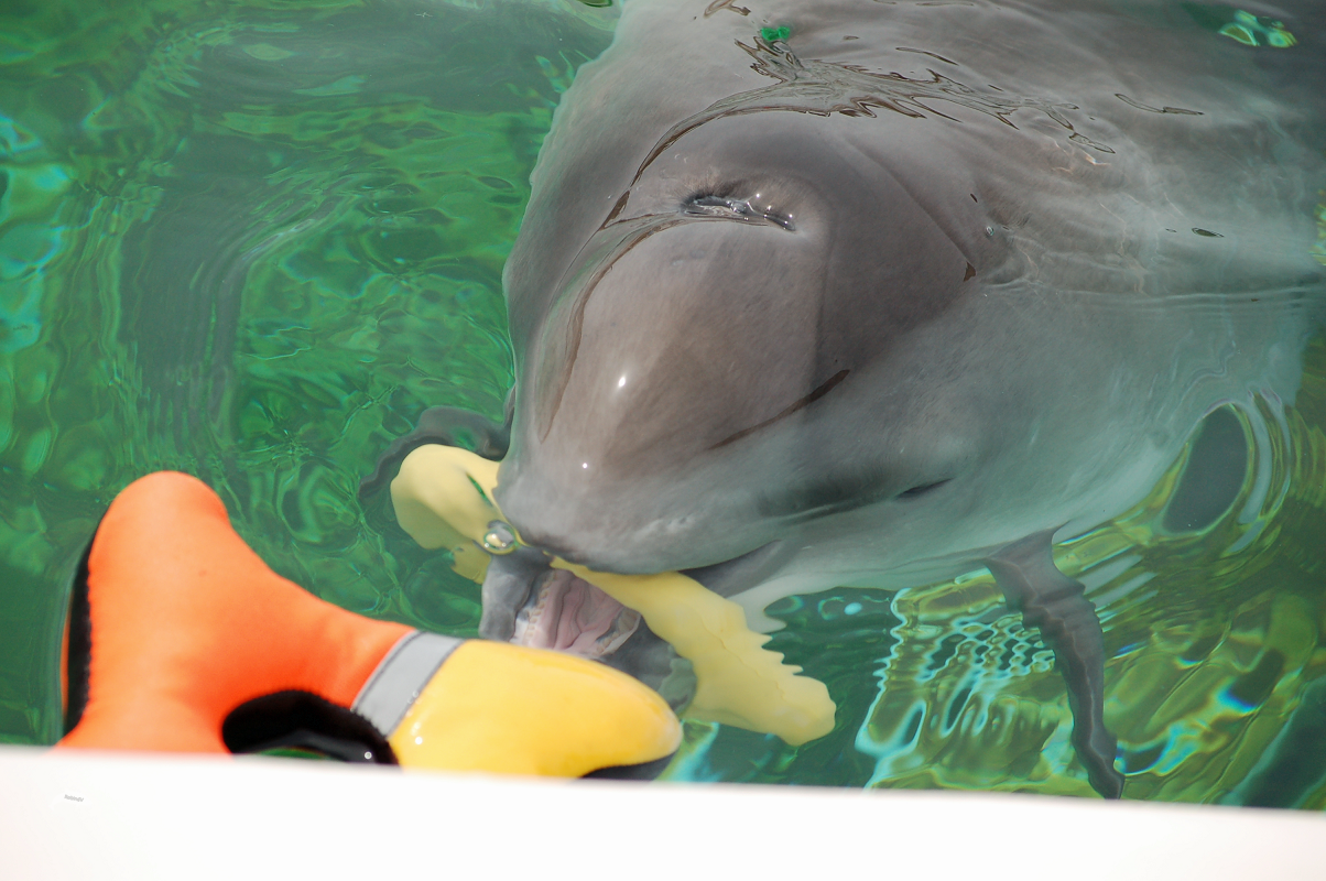 Berend is en oude bekende van me vanuit SOS Dolfijn. Berend heeft een heel moeilijk herstel gehad. Berend was jong en gewond toen hij strandde in het Duitse plaatsje Norderney. Hij had veel wonden en krassen die worden veroorzaakt na stranding door meeuwen en soms zelfs vossen!. Hij had onder andere een grote wond bij zijn blaasgat, een moeilijke plek om te laten helen. Dit werd tijdens zijn periode afgedekt met een doek. De eerste periode was het een grote vraag of Berend het wel zou redden. Toch herstelde hij, helaas wel met blijvende gezondheidsproblemen. Dit maakte Berend geen kandidaat om te worden uitgezet. Hij kreeg nog een CT scan in het ziekenhuis van Harderwijk om meer over zijn gezondheidssituatie te weten te komen, daarna werd hij verhuisd naar de permanente opvang in het Dolfinarium genaamd Bruinvisbaai. Inmiddels leeft Berend samen met Michael in Ecomare. De overblijfselen van zijn wonden zijn nog goed te zien door de littekens op zijn zij en bij zijn blaasgat. Toch heeft hij ondanks alles weten te herstellen en heeft hij nu nog een prachtig leven waarbij hij ambassadeur is voor zijn wilde soortgenoten en meehelpt in de educatie en het begrijpen van zijn soort. Ga Berend en Michael zeker eens bezoeken in Ecomare als je een leuk en leerzaam dagje wilt beleven!