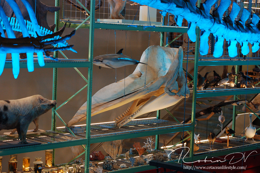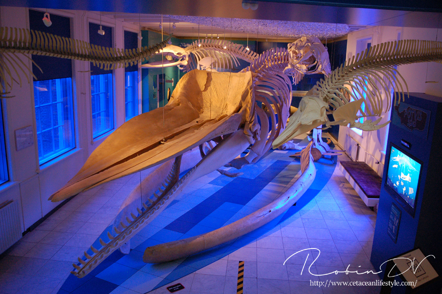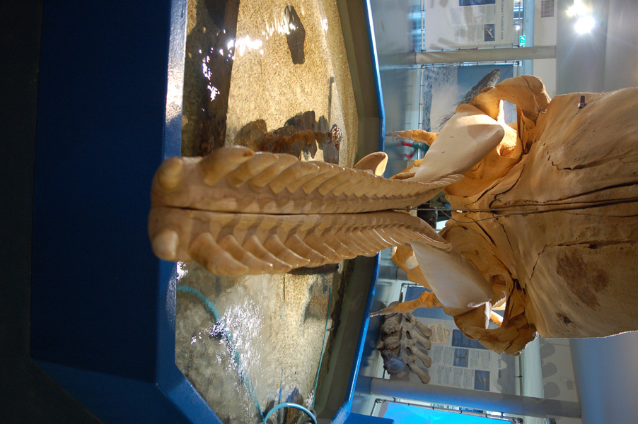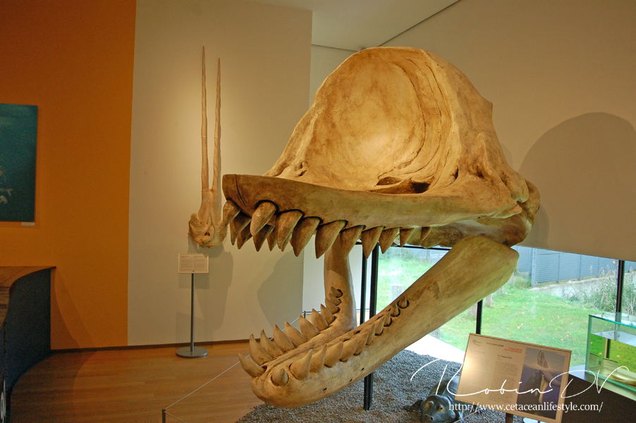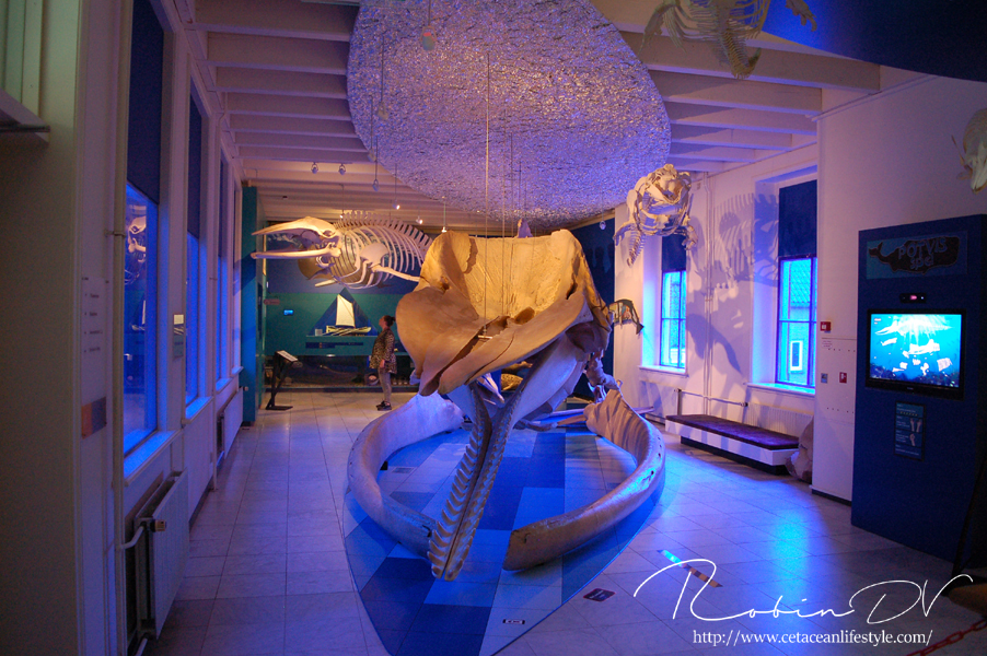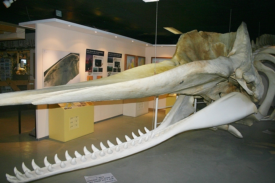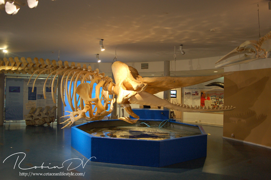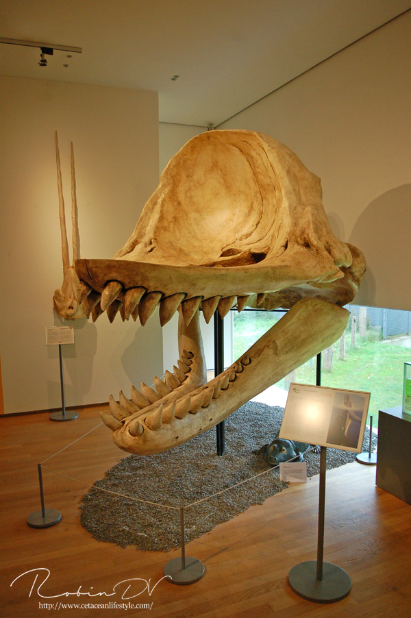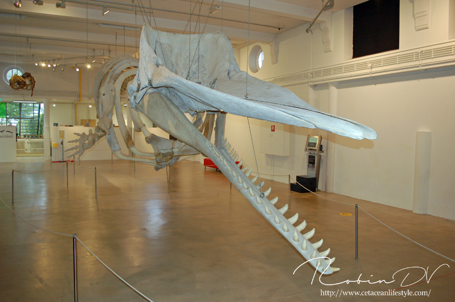Verder heb ik in Duitsland en Denemarken ook nog drie complete potvis-skeletten mogen bewonderen. Het exemplaar in Denemarken was uitermate fors en grof-gebouwd. Ook het skelet dat in Aquazoo Dusseldorf hangt krijgt nog een vernoeming, omdat het afkomstig is uit een stranding in Nederland! Het is afkomstig van een 17 meter lang mannetje dat op 3 januari 1970 op het strand in Breskens aanspoelde. Oorspronkelijk werd he skelet bewaard in Naturalis. Tien jaar later werd het cadeau gedaan aan het Aquazoo Löbbecke Museum in Dusseldorf. Franz Hönekopp, een beschermheer van het museum, aan wie zij een uitgebreide mineralencollectie te danken hebben, regelde de levering en financierde het transport van het skelet naar het Löbbecke Museum. Het kwam daar op 1 februari 1984 aan. De preparateurs ontvette het skelet ter plaatse, net op tijd voor de opening van het nieuwe gebouw in het Nordpark in 1987. Daar kon het voltooide skelet voor het eerst worden geassembleerd en aan het publiek worden gepresenteerd en is sindsdien een van de - letterlijk - grootste attracties van het museum. Dan is er nog de potvis die in het Natuurkunde museum van Munster hangt. Dit skelet is van een mannetje dat op 14 november 2011 strandde in Pellworm. Alledrie de skeletten staan hieronder op de foto.
