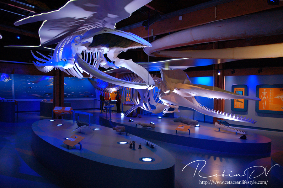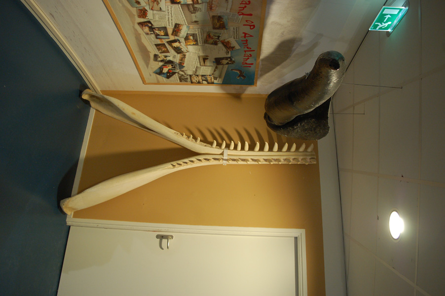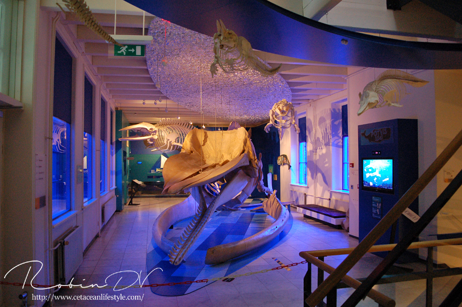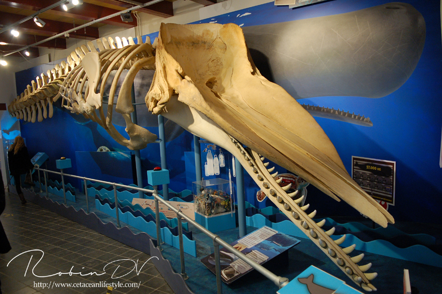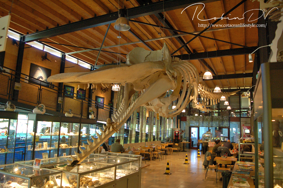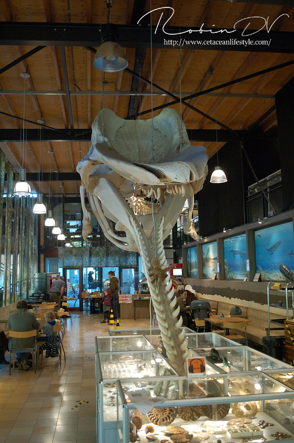 'Mijn' geliefde potvis in de oude ruimte met zowel de houten als stenen vloer en in de huidige locatie, hoog hangend boven de entree.