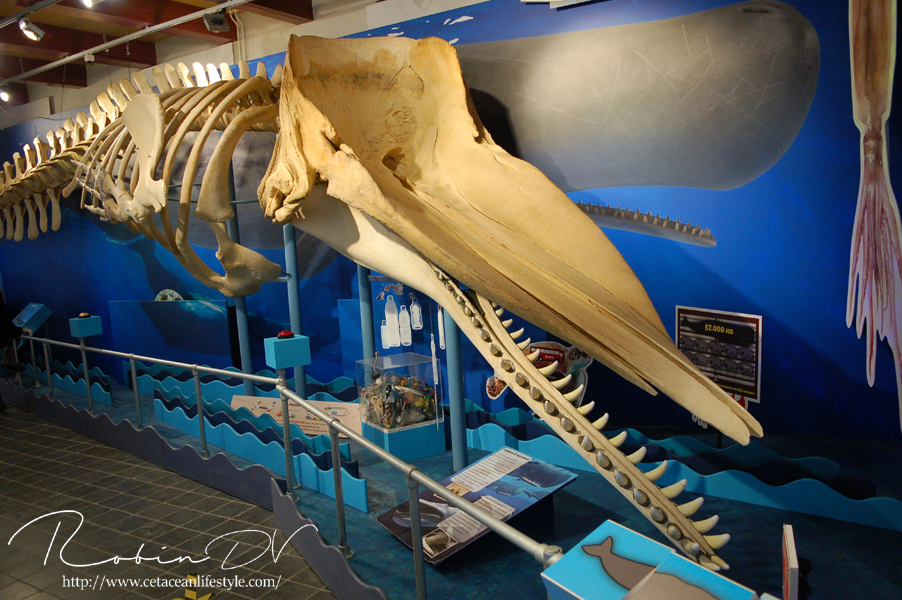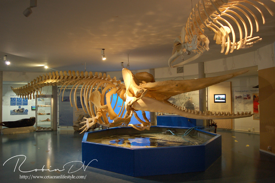 Het skelet dat hangt in het Natuurcentrum van Nes in Ameland is van één van de vier potvissen die in 1997 aanspoelden op Ameland. Met een lengte van 13.60 meter is het skelet van een potvis het grootste object in de collectie van het Natuurcentrum. In het museum is een walviszaal ingericht met onder meer een skelet van een potvis, een bultrug en verschillende kleinere skeletten, botten en modellen van walvisachtigen. De kaak van het vierde dier waar dieven een deel van hebben afgezaagd met een kettingzaag is ook te zien in dit museum! Ook zijn er filmbeelden van de aangespoelde potvissen te zien. Informatie over walvissen, de strandingen en nog veel meer is te vinden in deze permanente expositie. Het potvisskelet en verschillende andere walvisskeletten hangen strategisch opgesteld boven een aantal aquaria en zeewaterbassins. De beelden geven de stranding van 1997 weer. Dat er op één plaats vier dieren tegelijk aanspoelden, was nog niet eerder gebeurd. Een dode potvis wordt binnen enkele uren zo warm dat het dier letterlijk kan ontploffen, zoals op Ameland gebeurd is. Het rottingsproces komt snel op gang doordat de dikke speklaag de lichaamswarmte vasthoudt. Er ontwikkelen zich gassen in de maag en ingewanden. Om ontploffing te voorkomen hebben medewerkers van de zeehondencrèche in Pieterburen de kadavers van twee dieren 'lek' geprikt. Beelden van de 'ontploffende' potvissen zijn eveneens te zien in het Natuurcentrum. Het museum is klein, maar zeer vermakelijk en informatief met een leuk zeeaquarium.